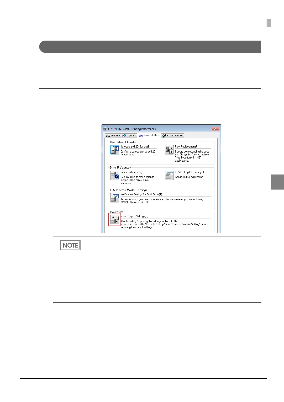 Select [Driver Utilities] tab. Click [Import/Export Settings].