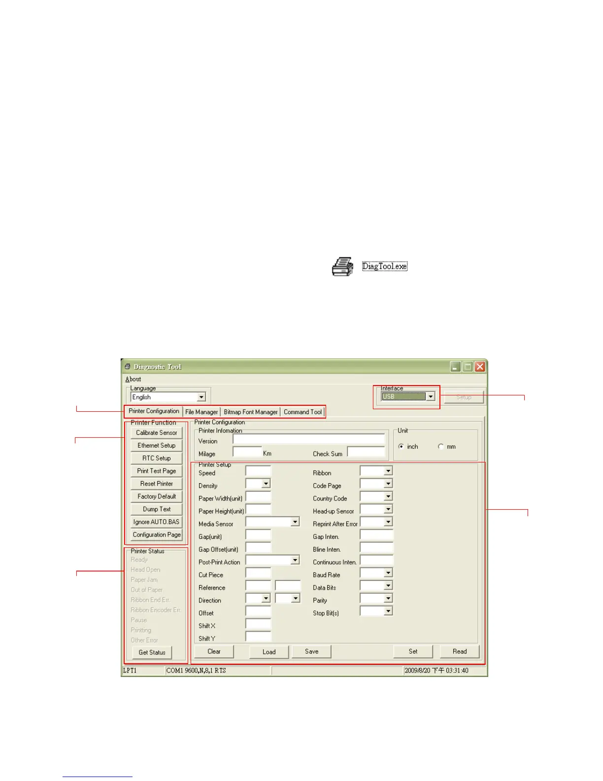 2. There are four features (Printer Configuration, File Manager, Bitmap Font