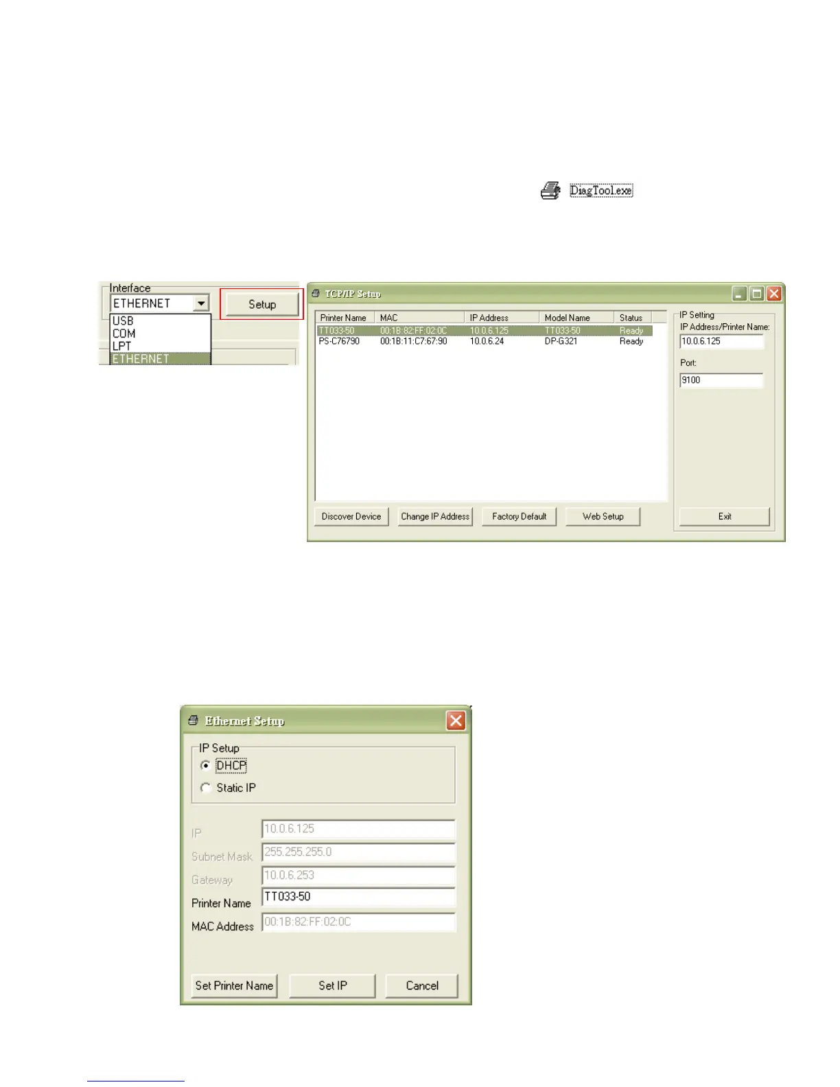 4. Select “Ethernet” as the interface then click on the “Setup” button to setup the IP