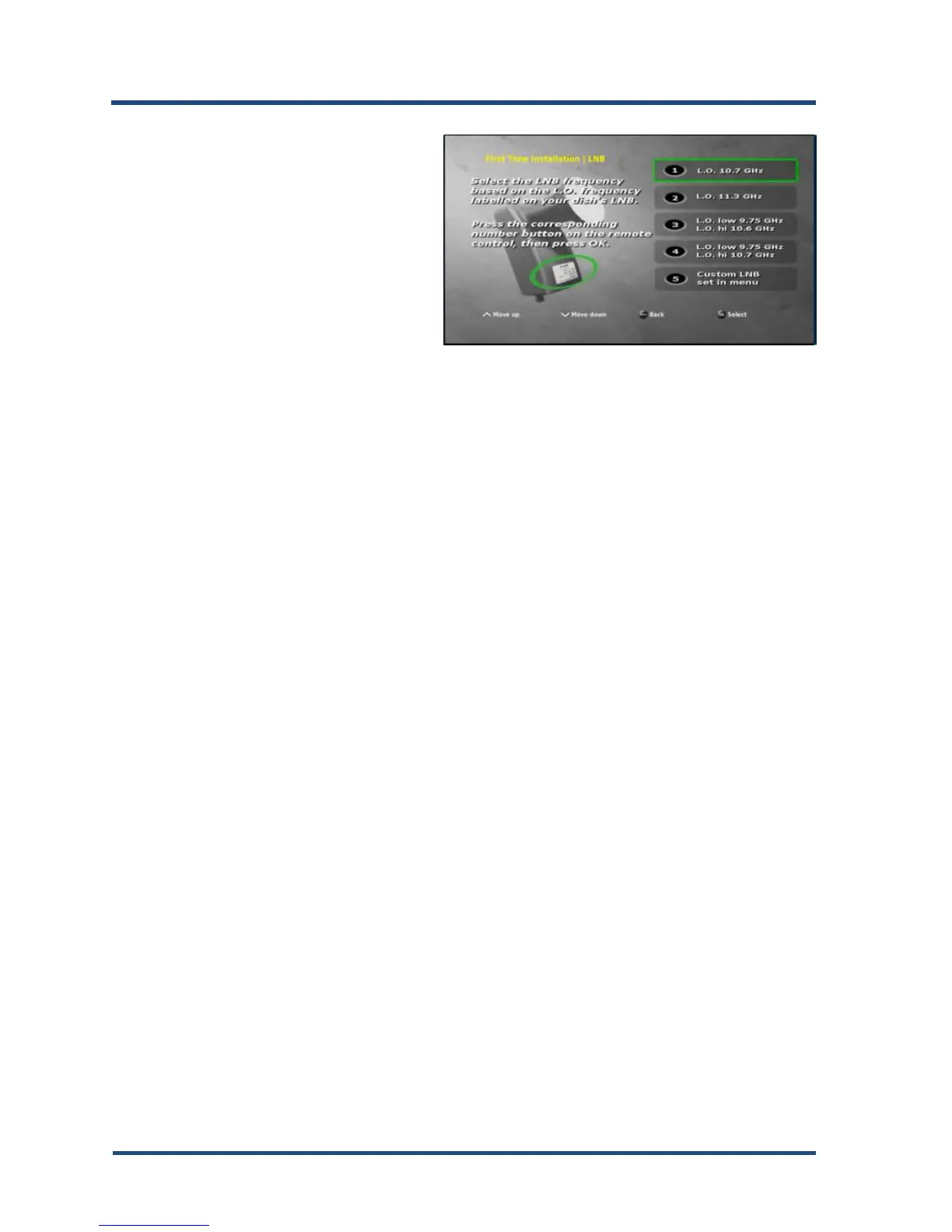 11. The Dish Installation – LNB screen will be displayed with tips to help you