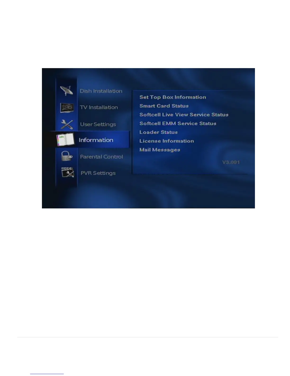 The information section contains the information for the set top box and smart card.