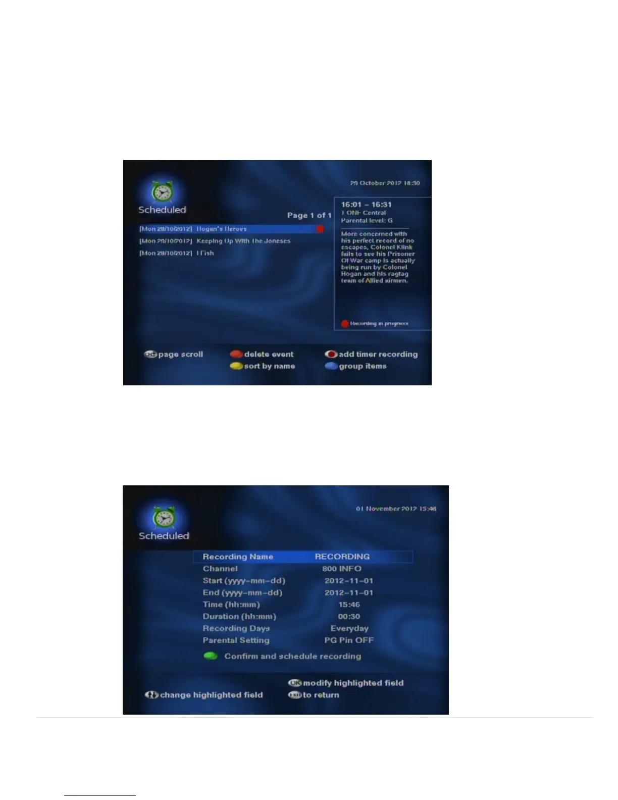 13.5.2 Scroll to the Scheduled List icon and press OK to launch the Scheduled List