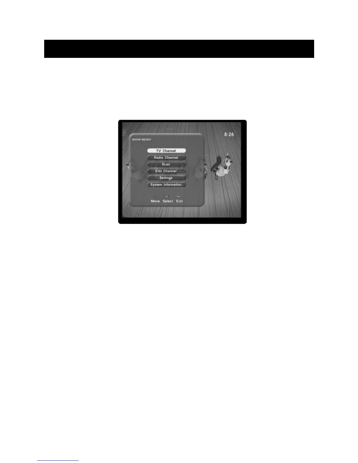 The MAIN MENU allows you access to all set up controls in the set top