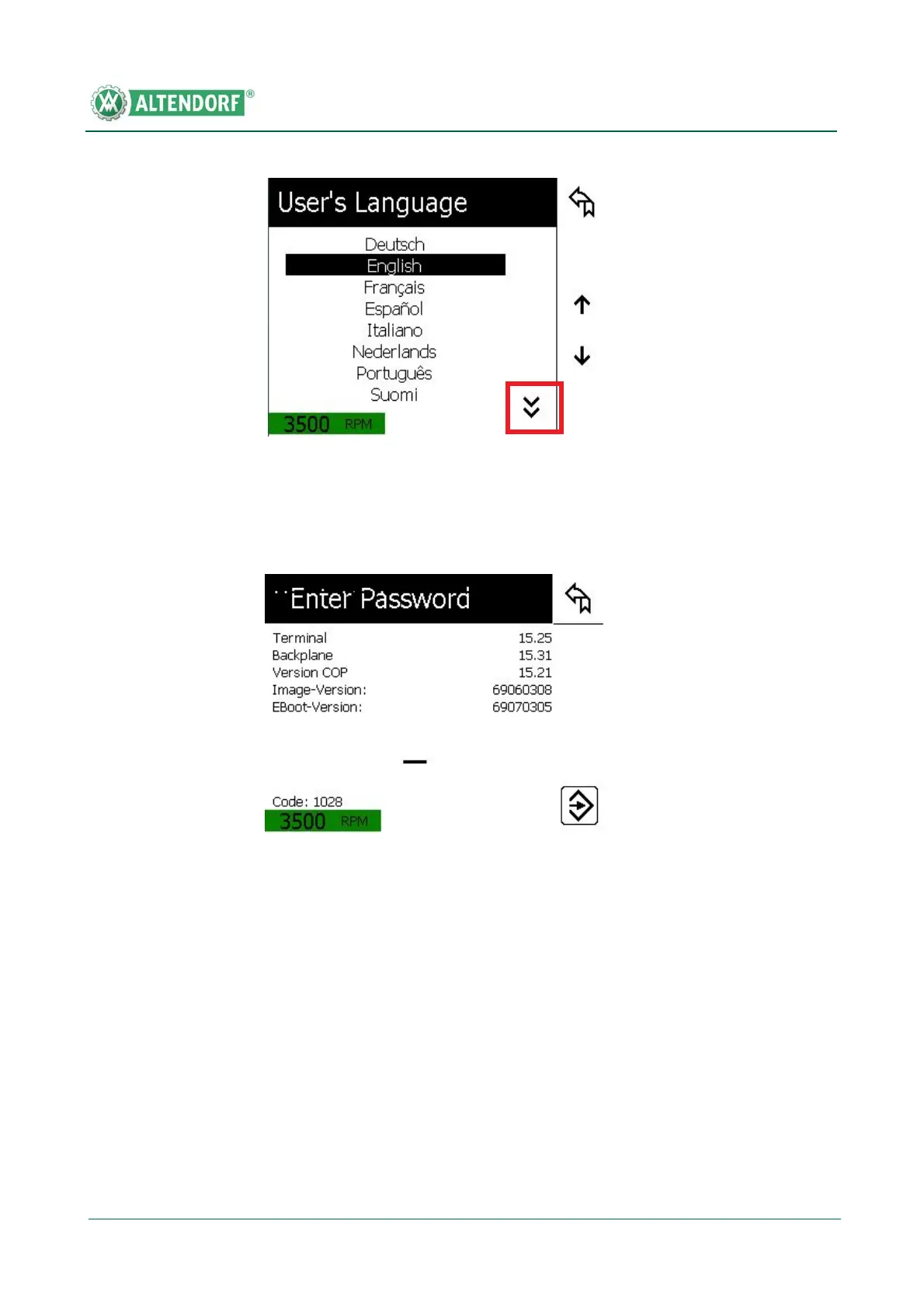 When the function key Technician level is pressed in the user menu, the res-