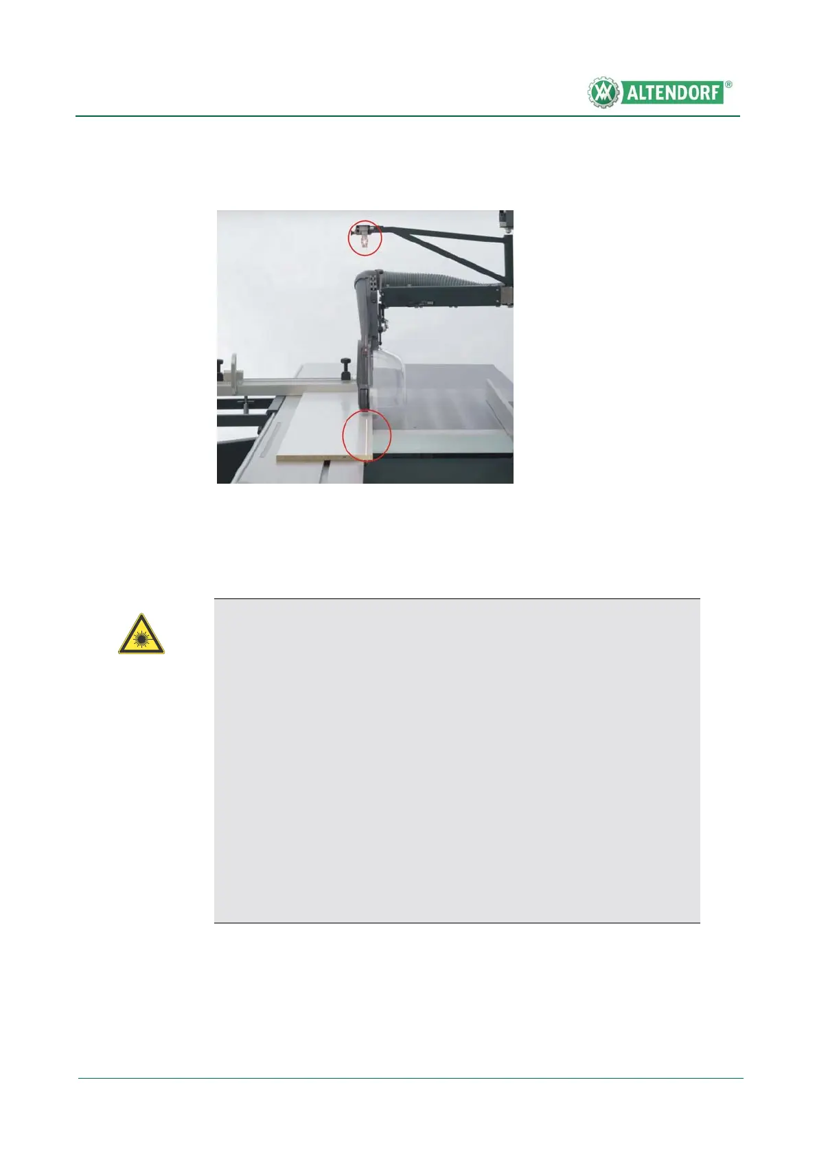 The laser beam shows the run of the cutting line over a length of approx. 5000