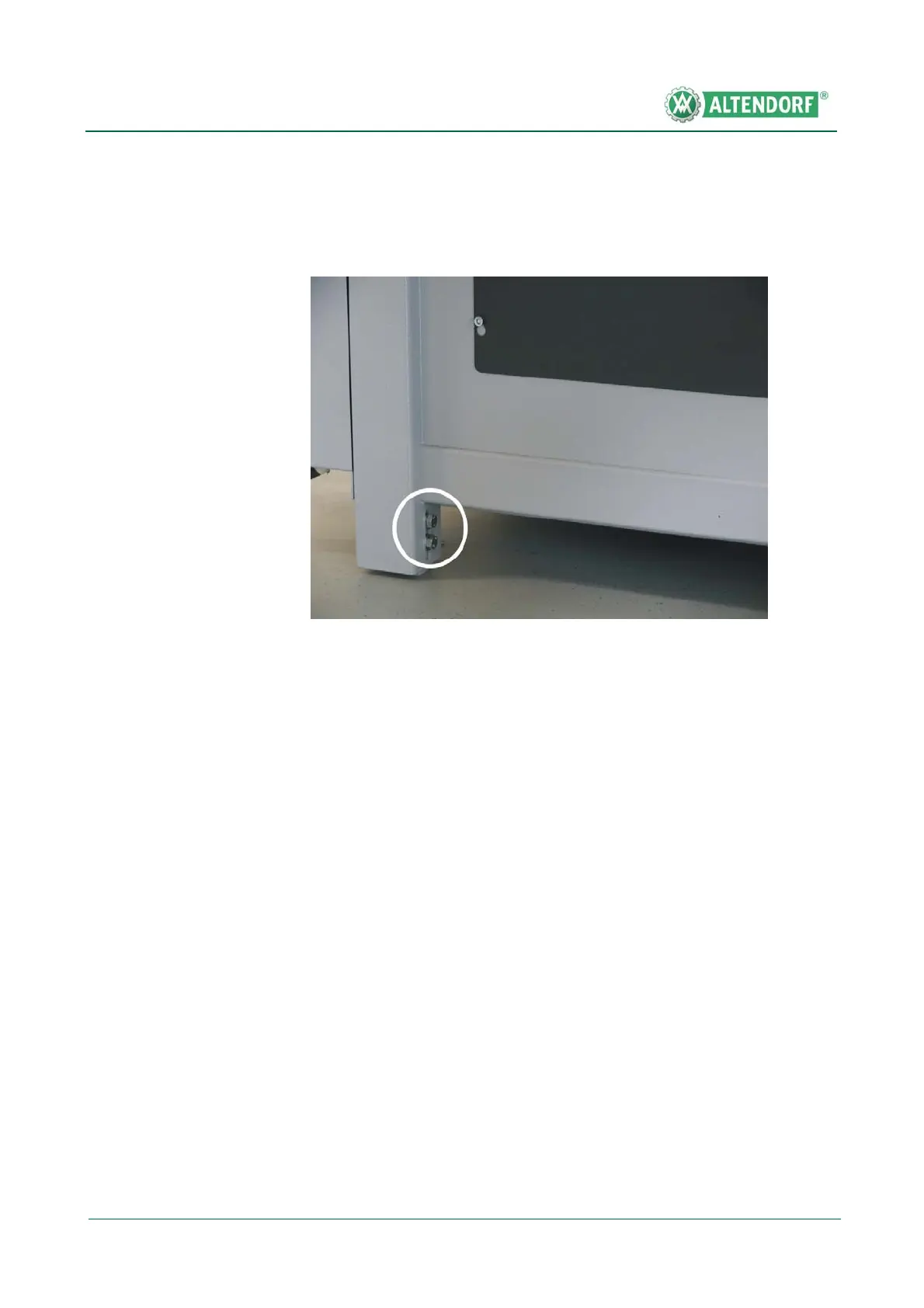screws and lower the fixing down to the floor. Then retighten the two screws.