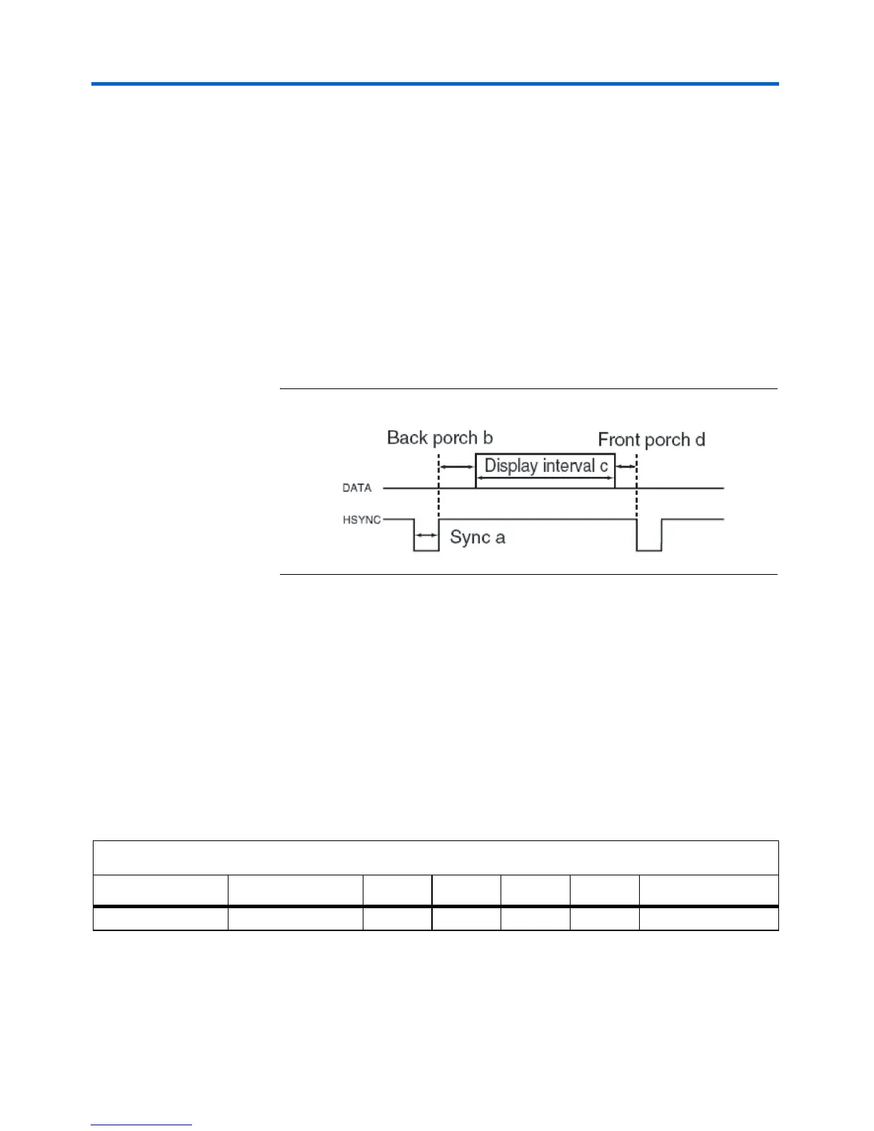 The display interval starts after the backporch time period b expires. For