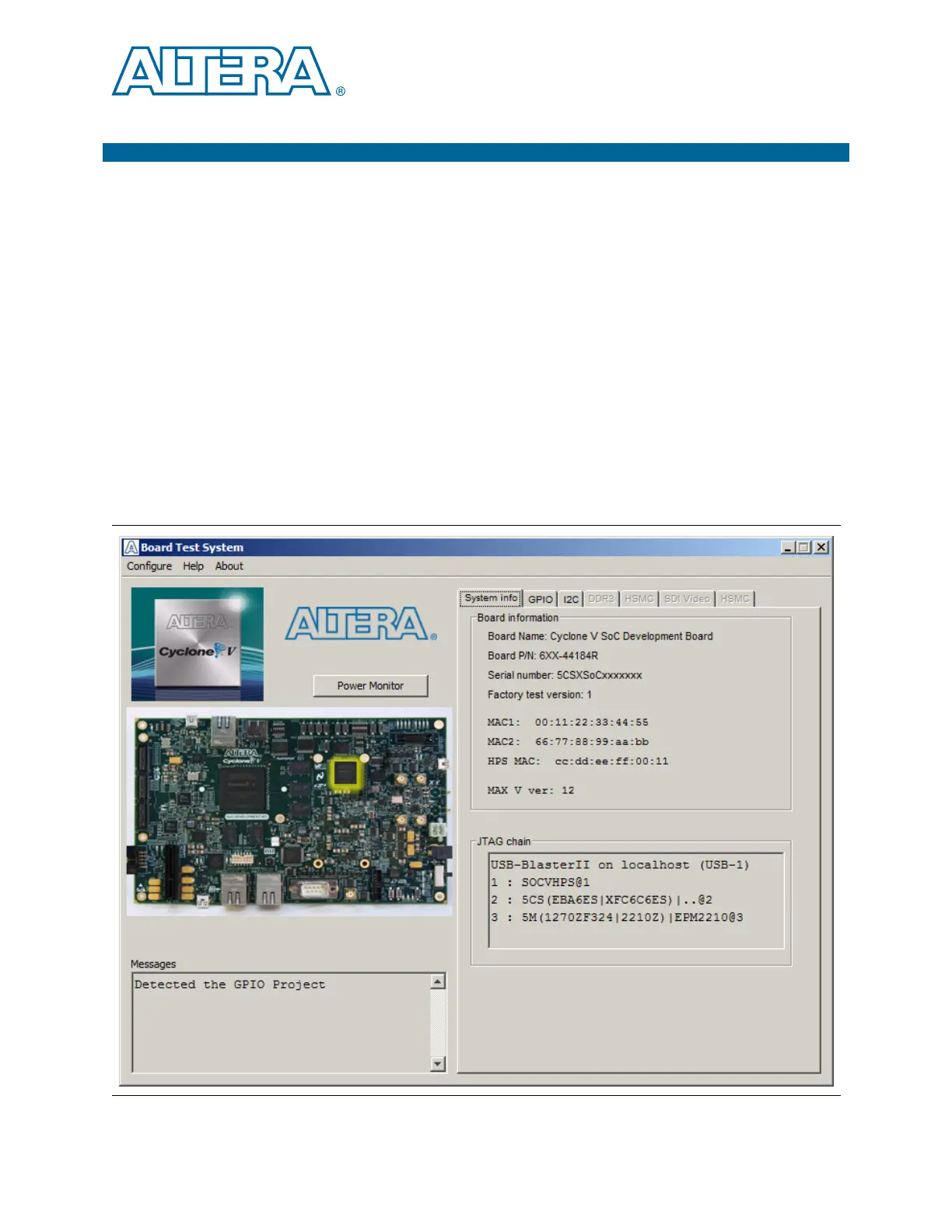 in the Cyclone V device. Figure 6–1 shows the initial GUI for a board that is in the