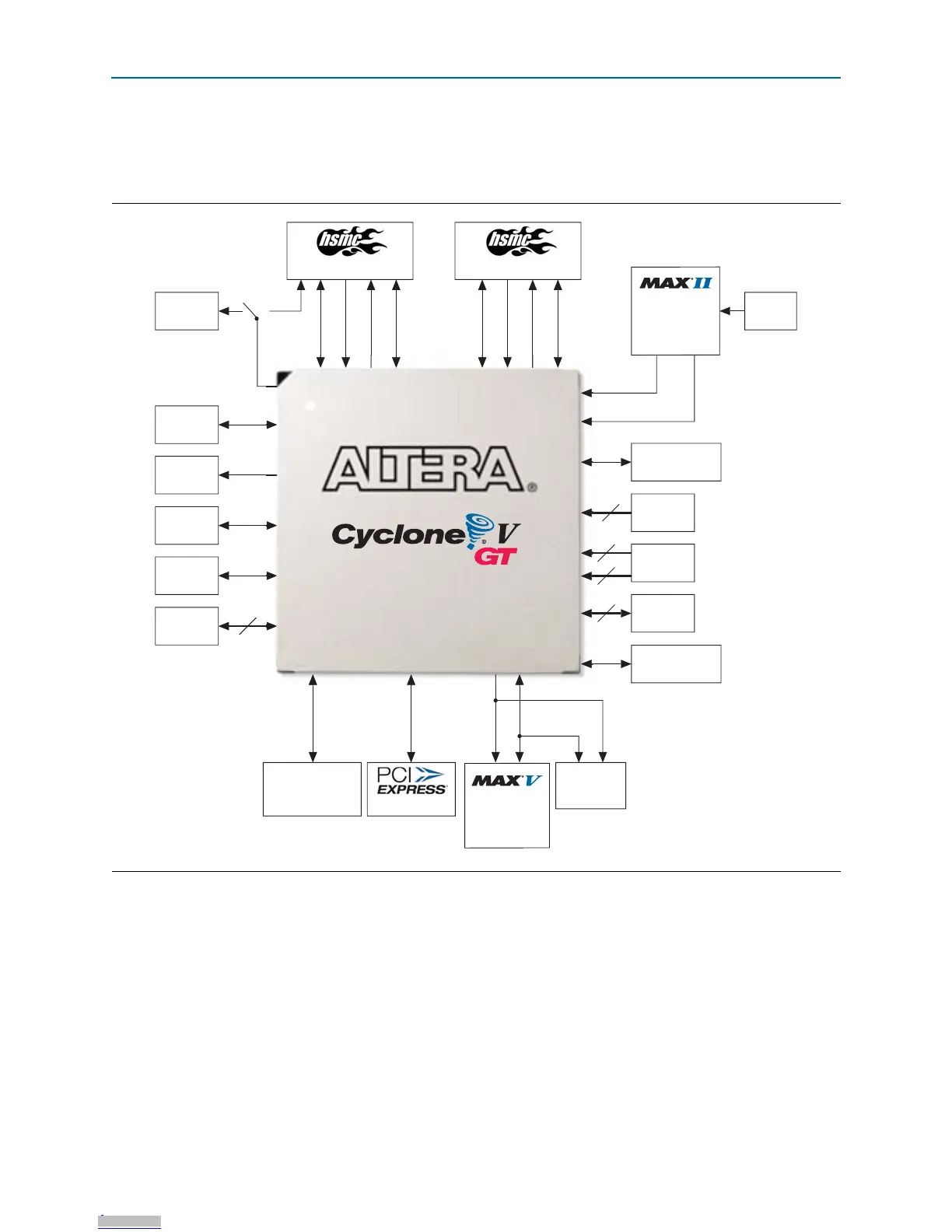 Figure 1–1 shows a block diagram of the Cyclone V GT FPGA development board.