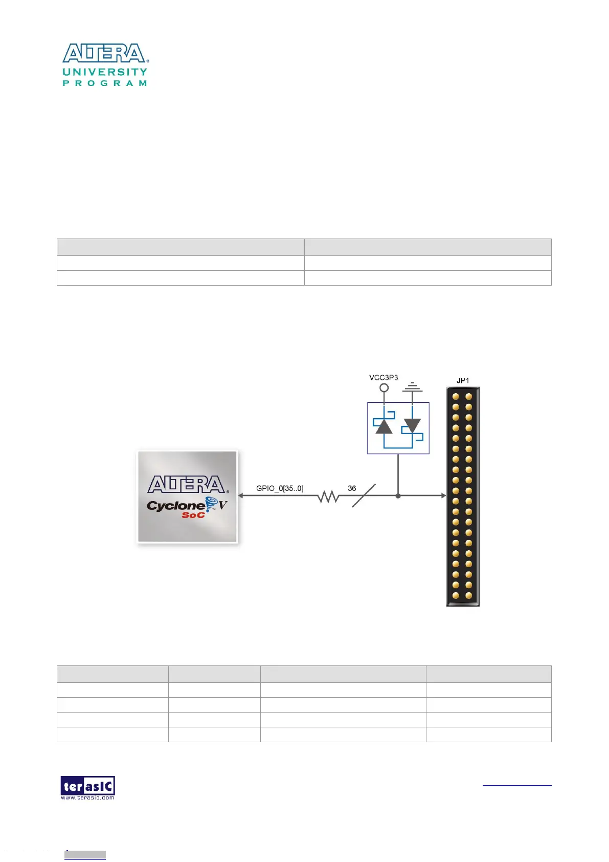 Figure 3-18 Connections between the GPIO header and Cyclone V SoC FPGA