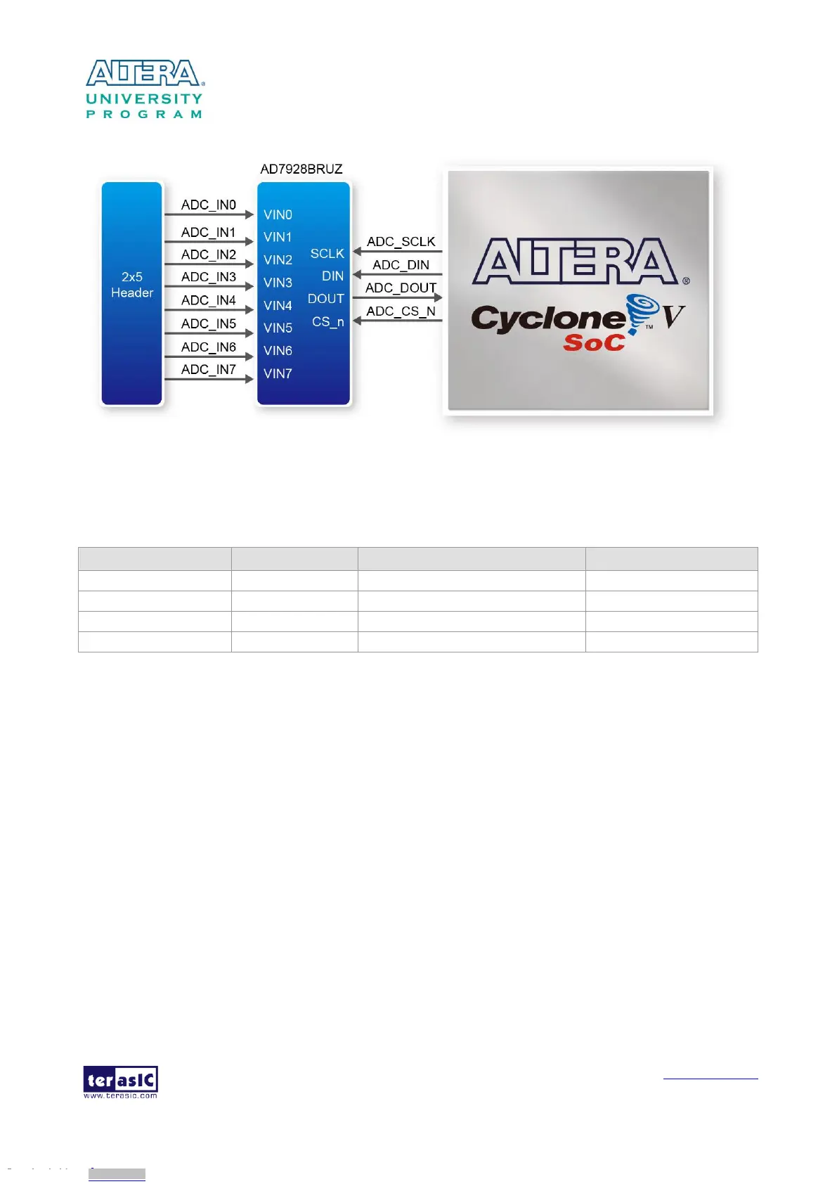 Figure 3-30 Connections between the FPGA, 2x5 header, and the A/D converter