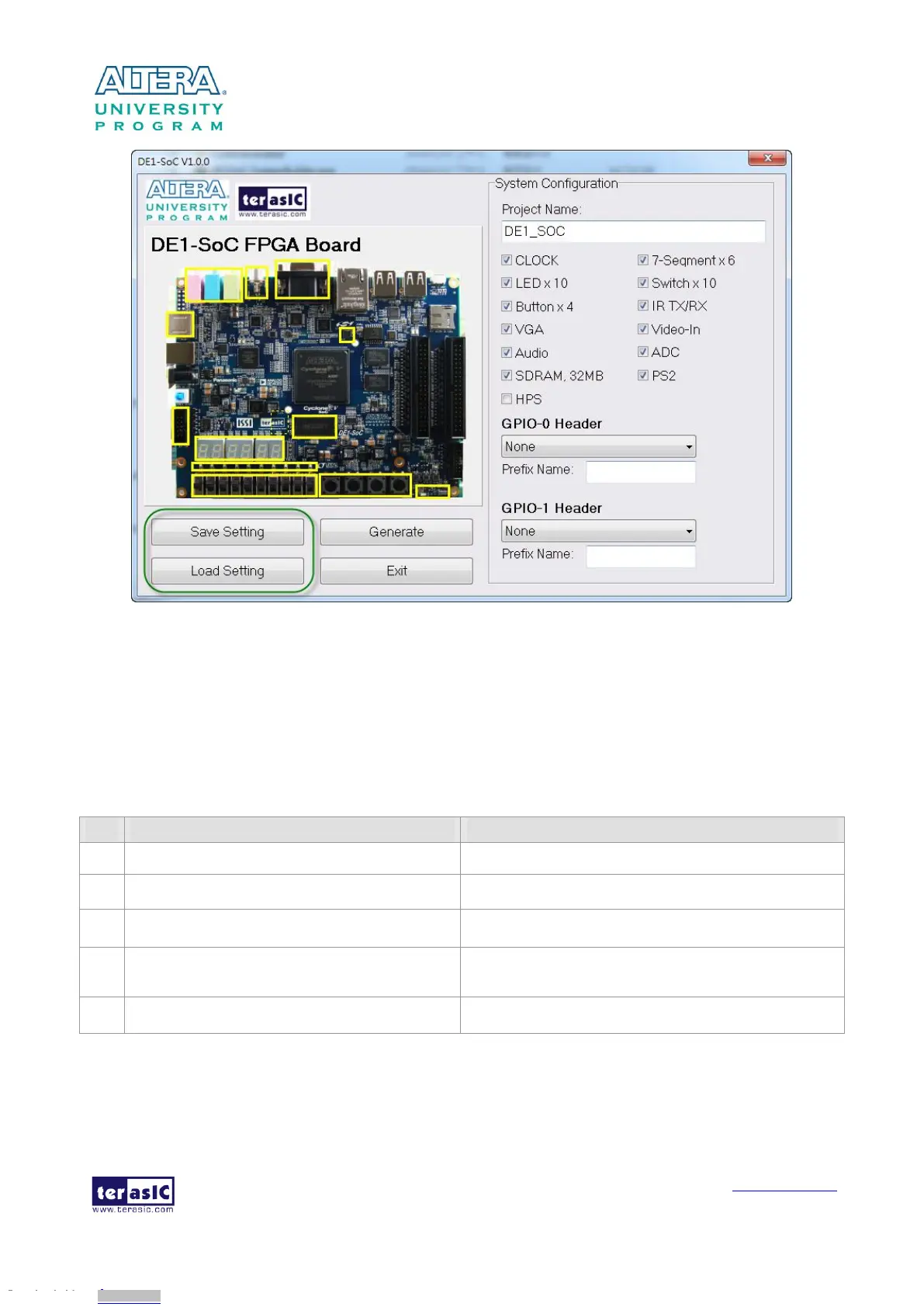 When users press the Generate button, the DE1-SoC System Builder will generate the