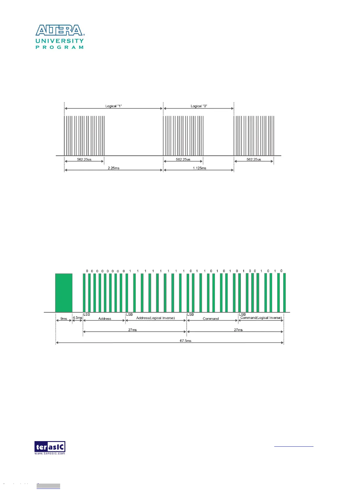 • Logical '1' – a 562.5µs pulse burst followed by a 1.6875ms space with a total transmit time