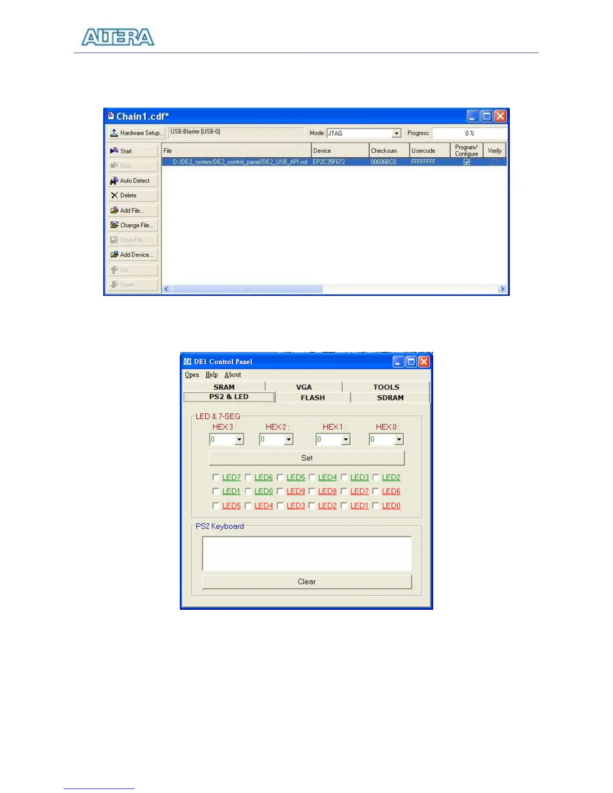 which is active on the host computer, via the USB Blaster link. The graphical interface is used to