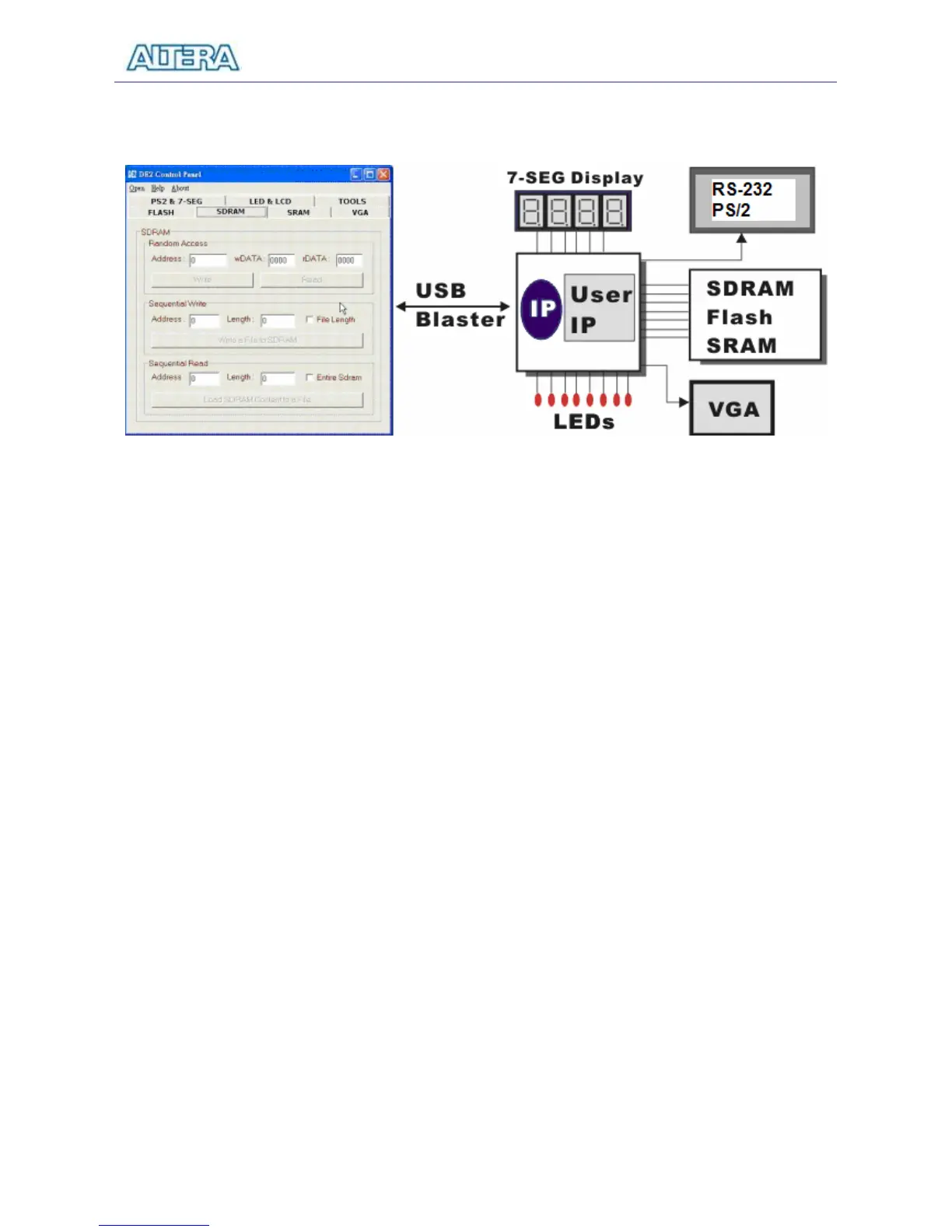 LEDs, talk to the PS/2 keyboard, read/write the SRAM, Flash Memory and SDRAM, load an image