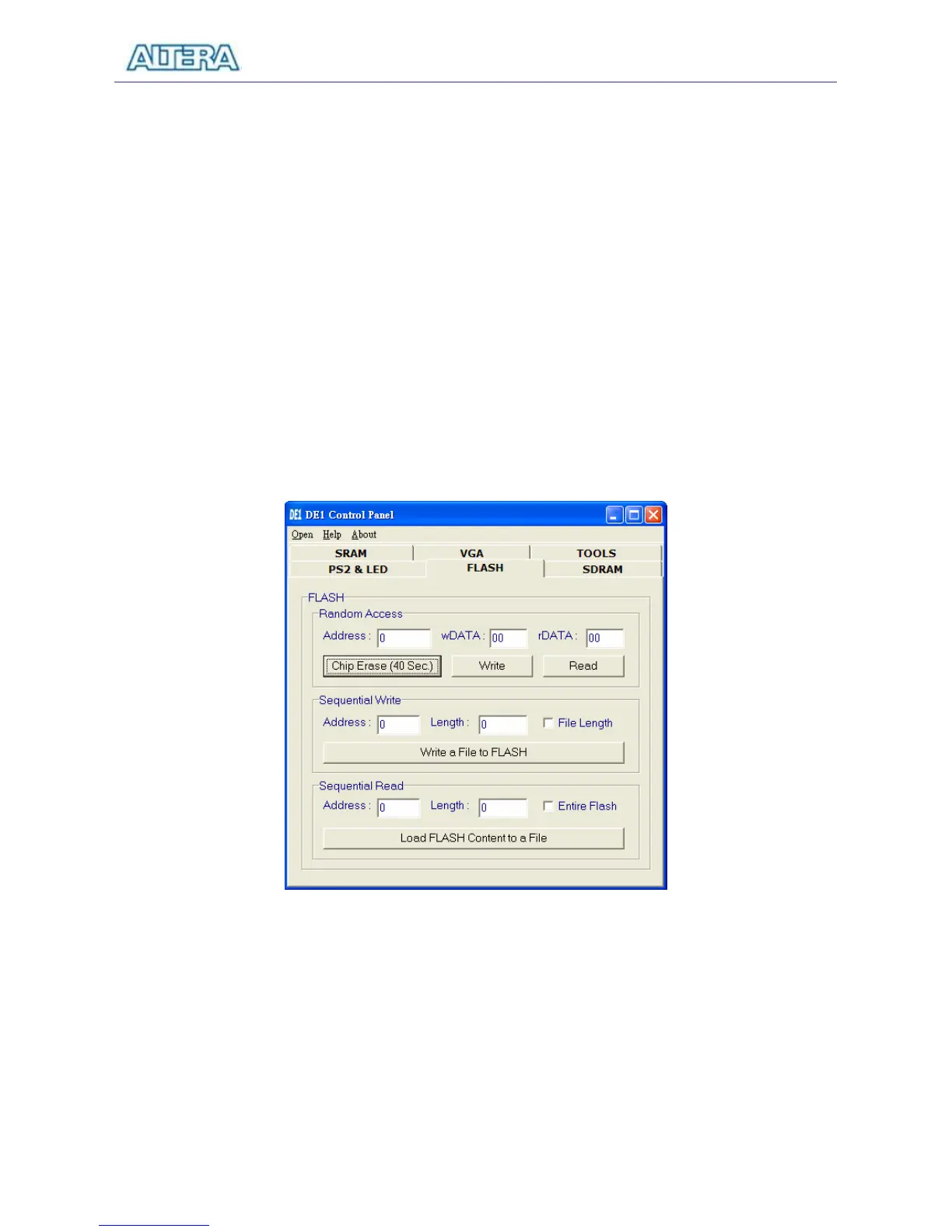 To open the Flash memory control window, shown in Figure 3.6, select the FLASH tab in the