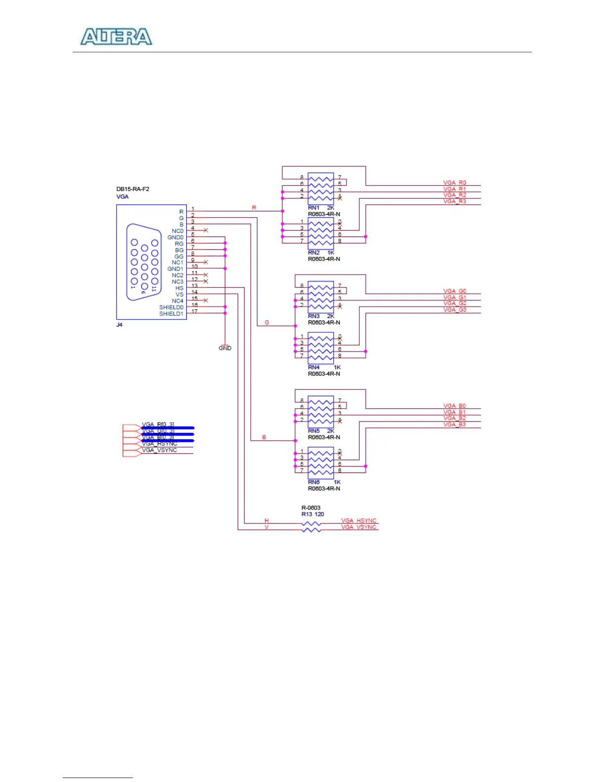 The DE1 board includes a 16-pin D-SUB connector for VGA output. The VGA synchronization