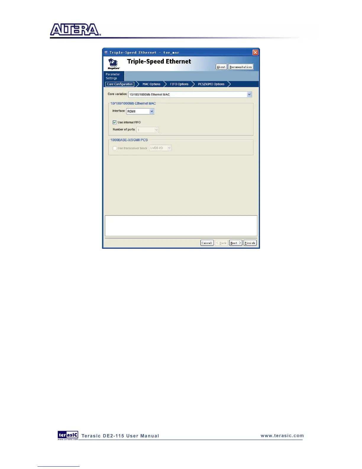 In the MAC Options tab (See Figure 6-29), users should set up proper values for the PHY chip