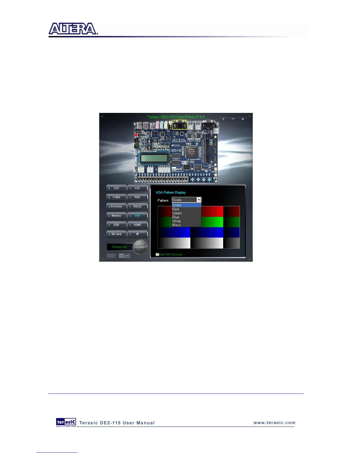 2. Plug a D-sub cable to VGA connector of the DE2-115 board and LCD/CRT monitor.