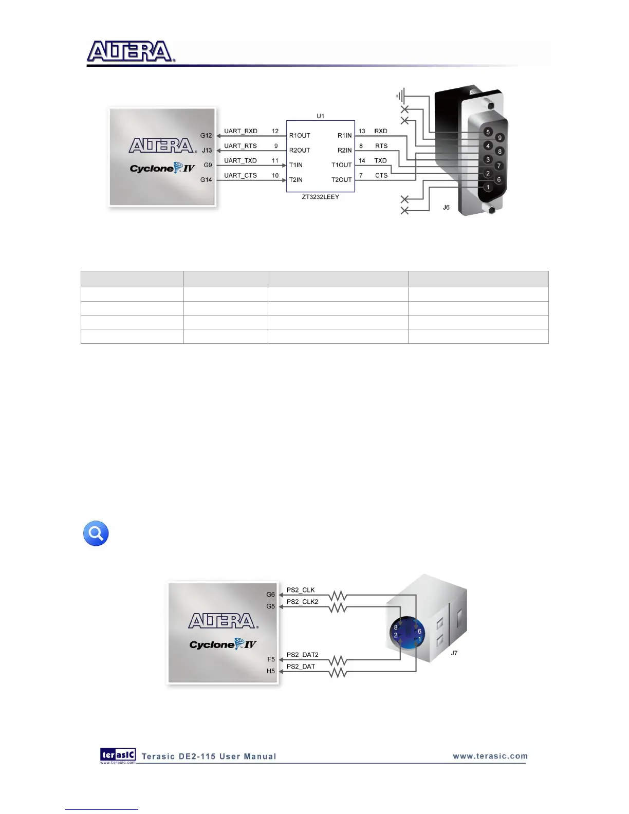 The DE2-115 board includes a standard PS/2 interface and a connector for a PS/2 keyboard or