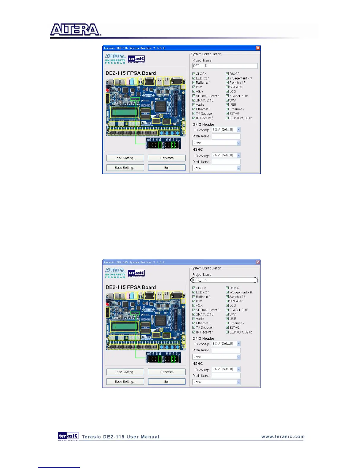 Figure 5-3 The DE2-115 Board Type and Project Name
