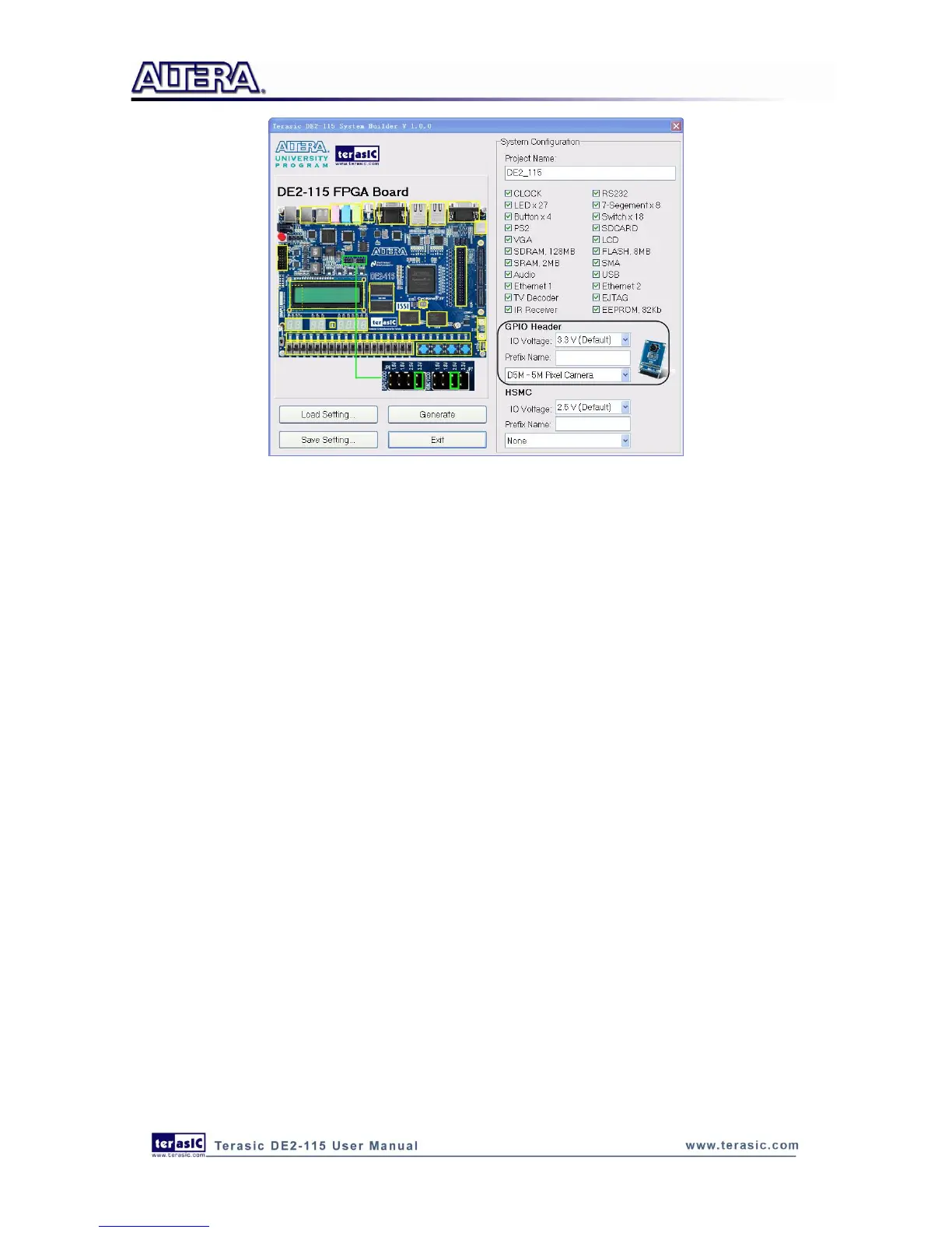 Users can connect HSMC-interfaced daughter cards onto HSMC located on the DE2-115 board