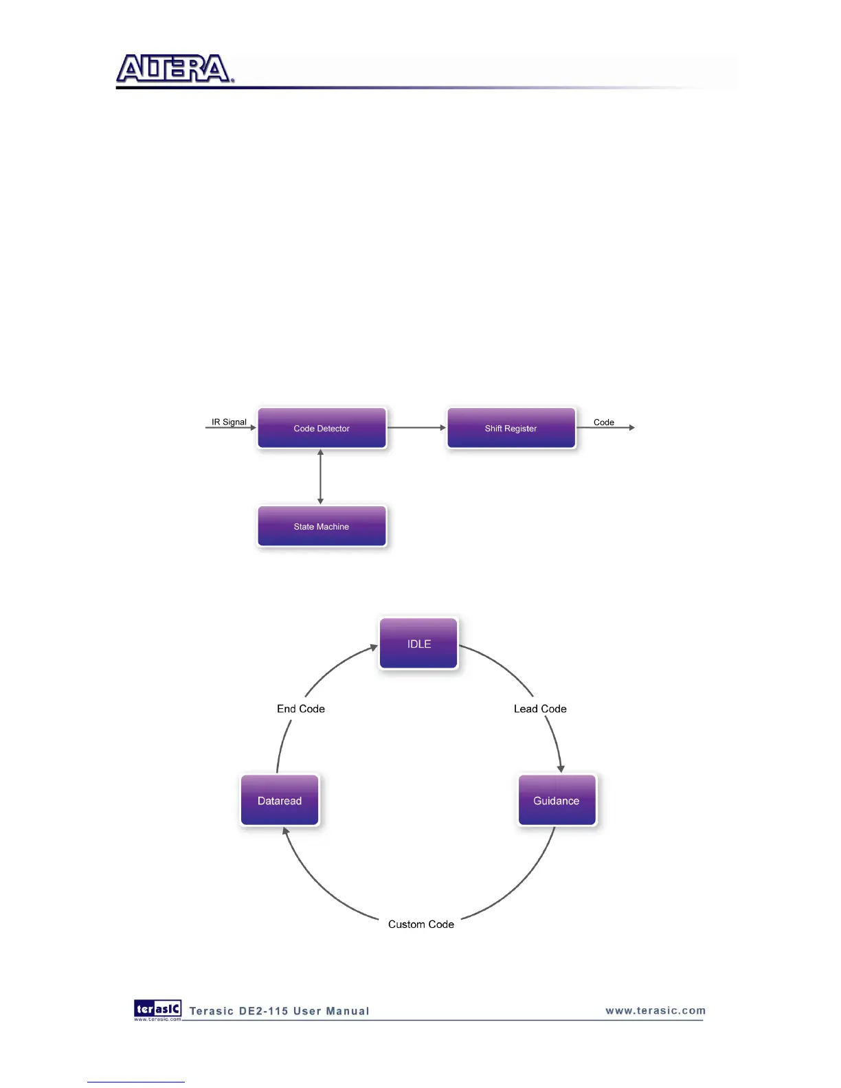 After the IR receiver on DE2-115 board receives this frame, it will directly transmit that to FPGA.