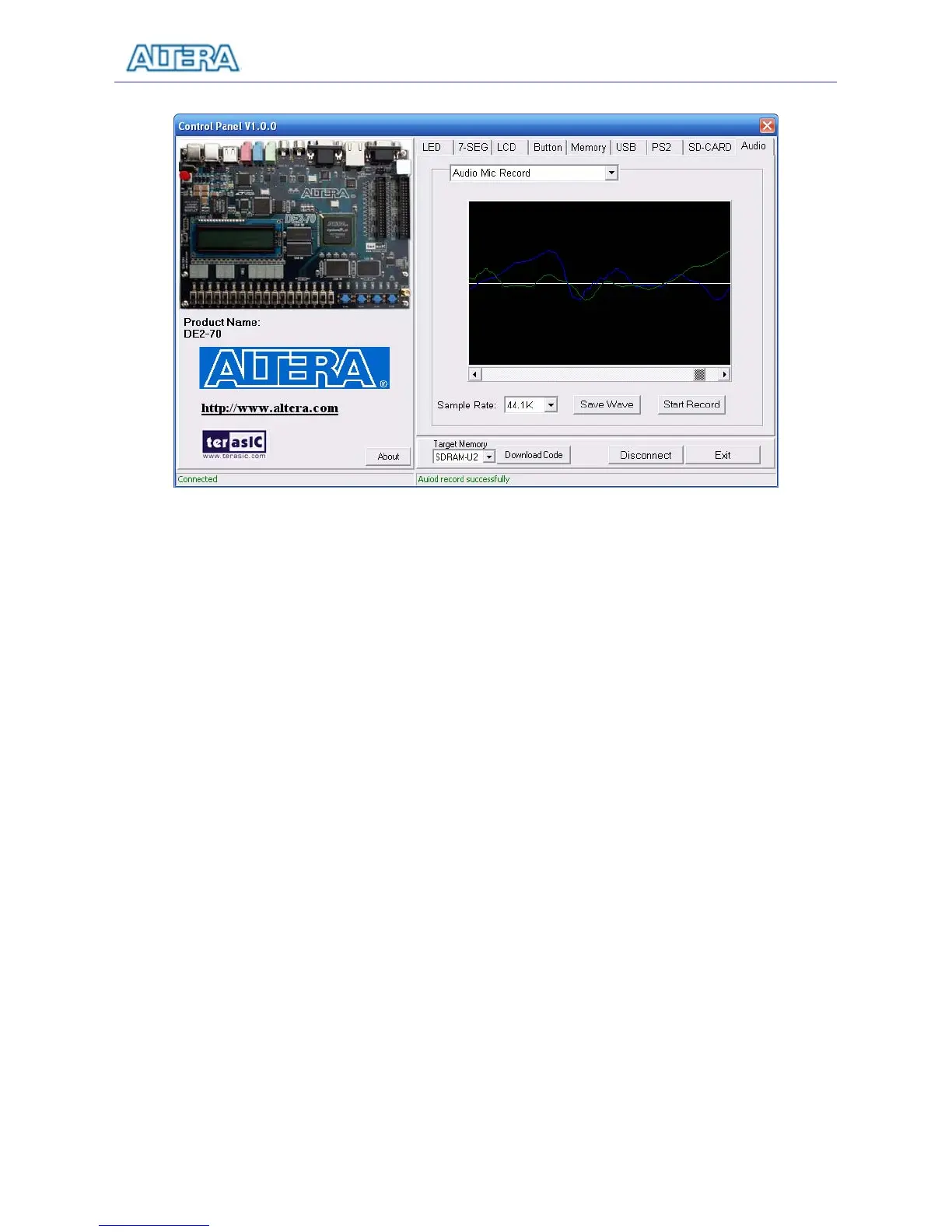 The DE2-70 Control Panel is based on a NIOS II system running in the Cyclone II FPGA with the