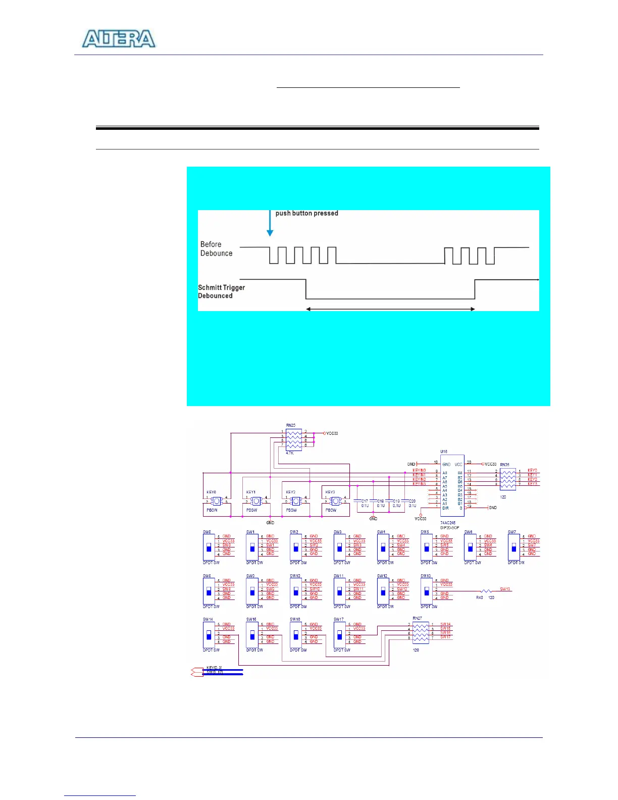 The DE2 Board provides 4 push buttons. All of the buttons are Schmitt Trigger
