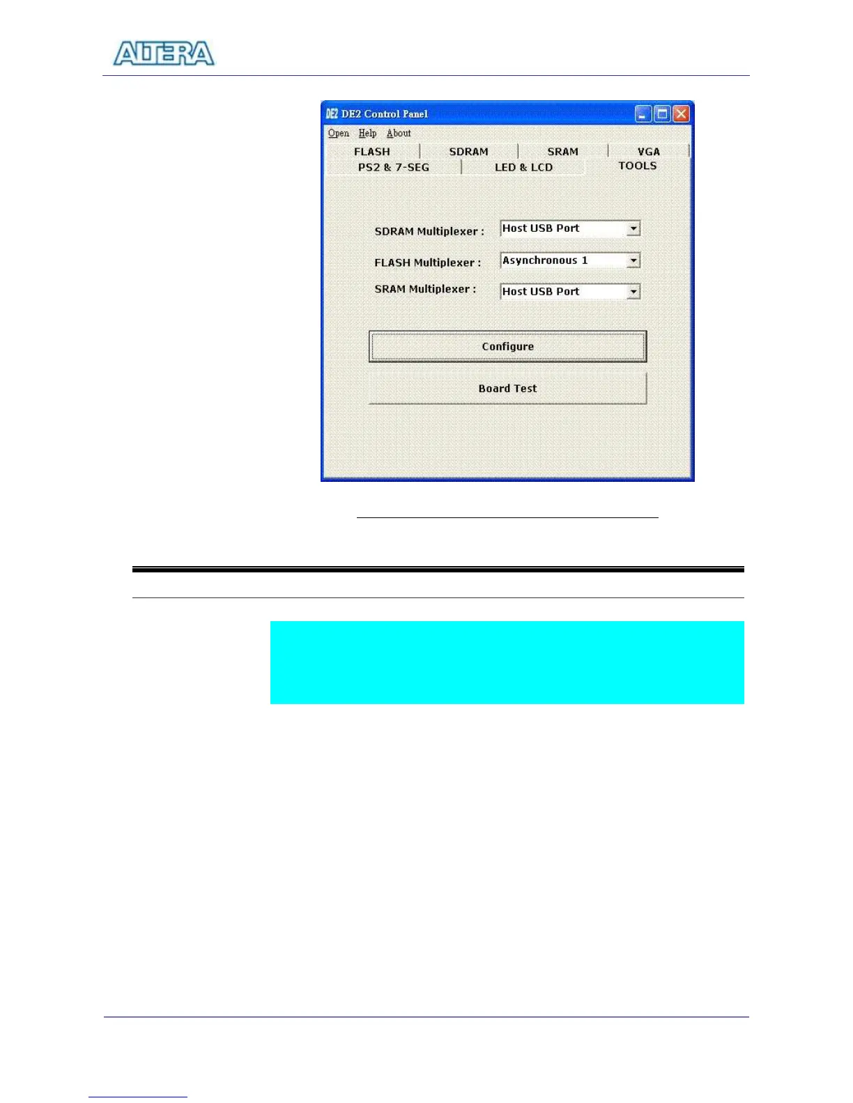 Figure 11.12 DE2 Control Panel – The TOOLS page