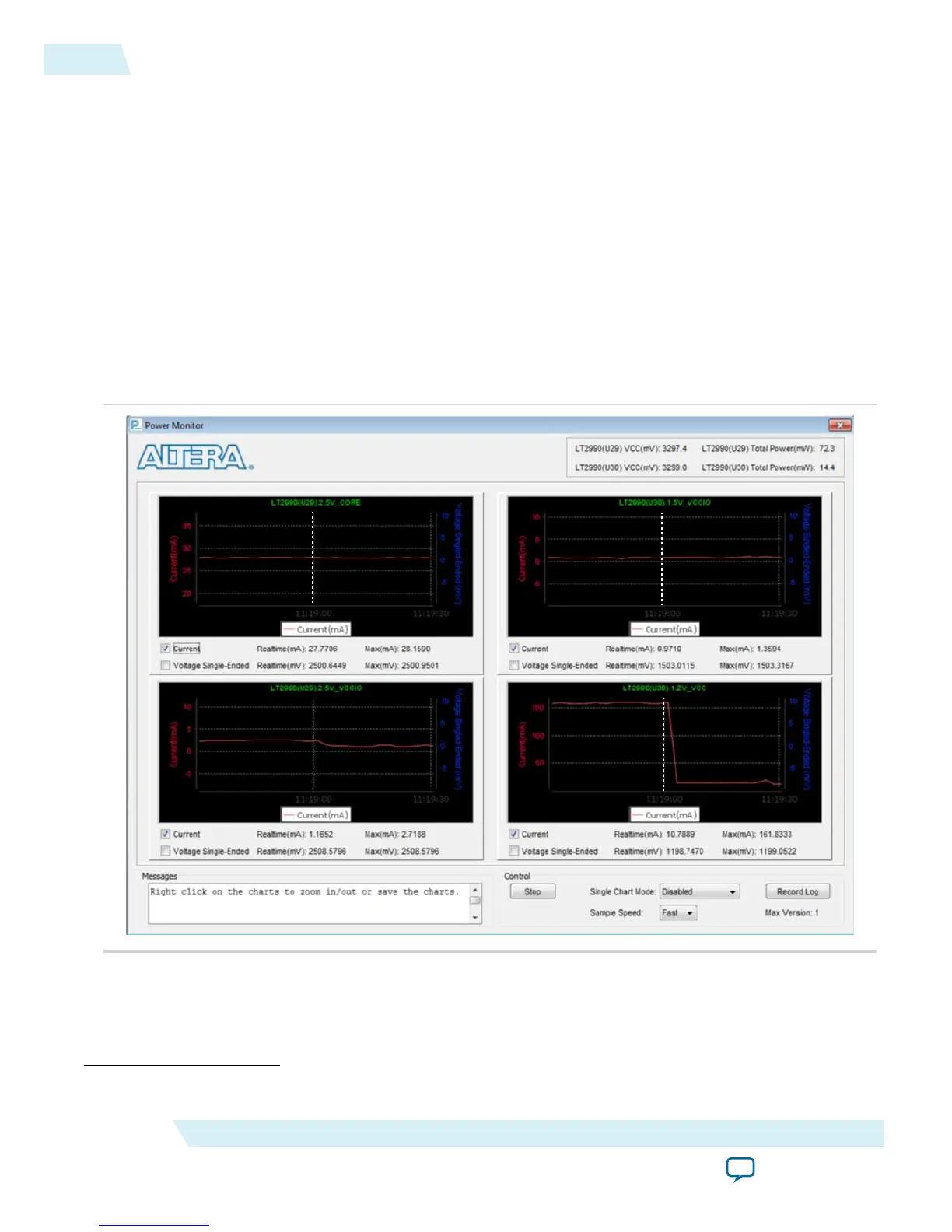will see a current monitor for each of the main supplies to the MAX 10 device as follows:
