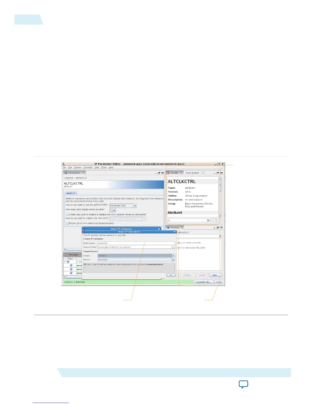 • Specify parameters defining the IP core functionality, port configurations, and device-specific
