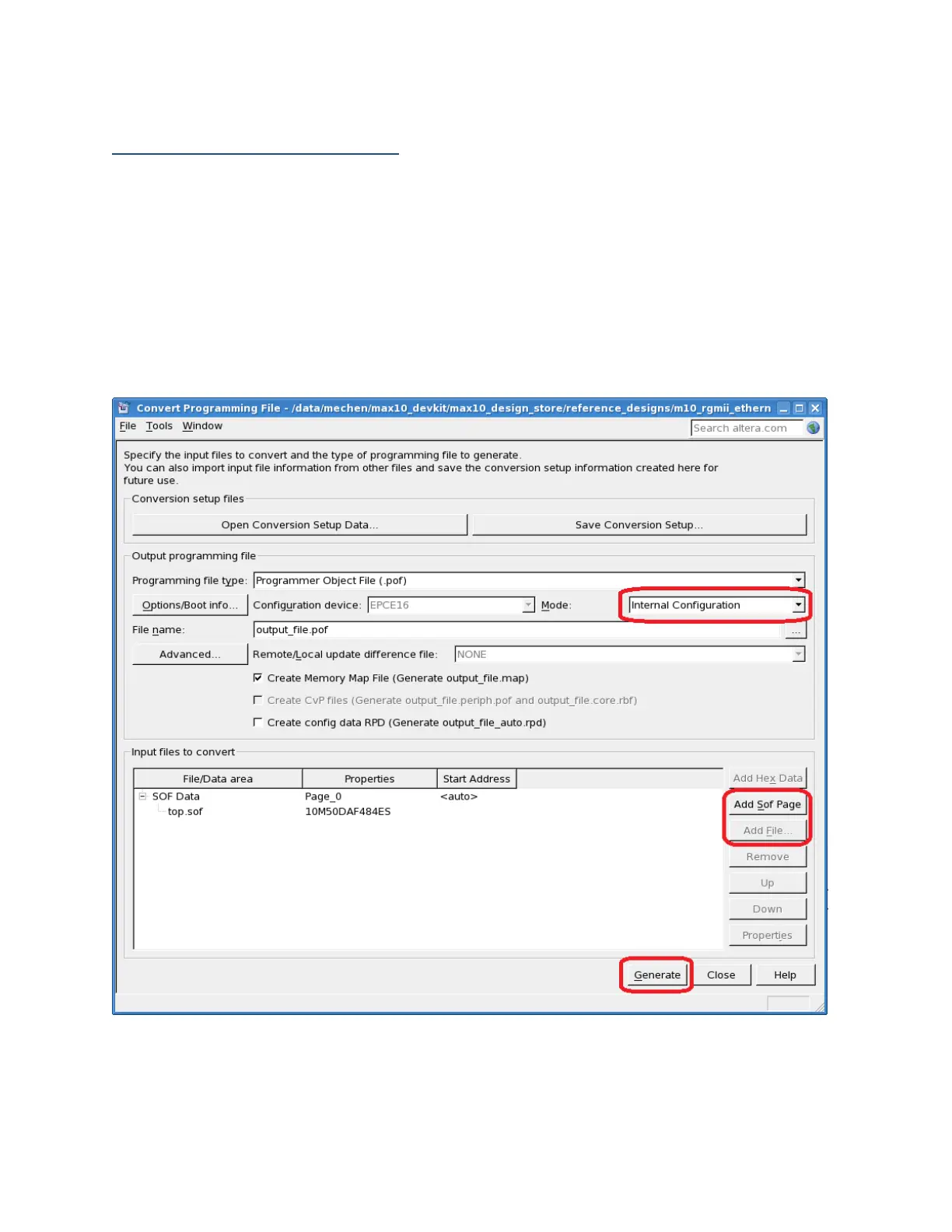 Please follow the steps on how to convert SOF file to POF file for MAX 10 FPGA internal
