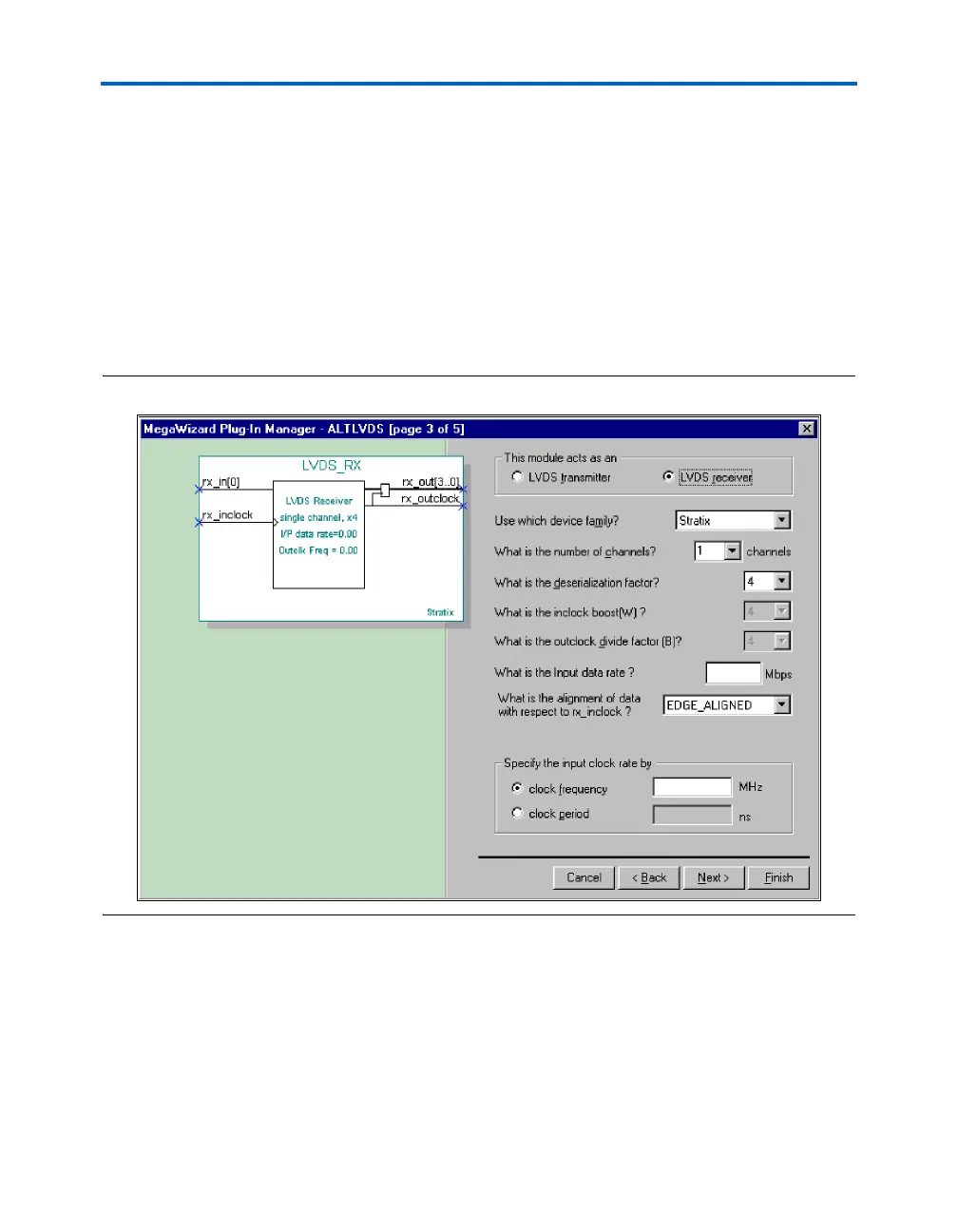 different options. Figure 5–40 shows page 3 of the altlvds MegaWizard