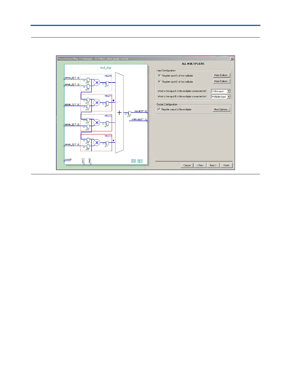 Figure 7–4. Quartus II Software View of MegaWizard Implementation of a DSP Block in Four-Multipliers