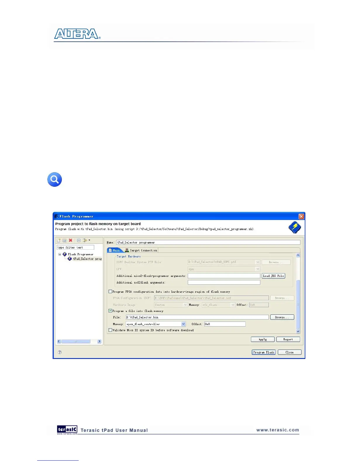 Click Program Flash to start program tPad_Selector.bin to EPCS in the board