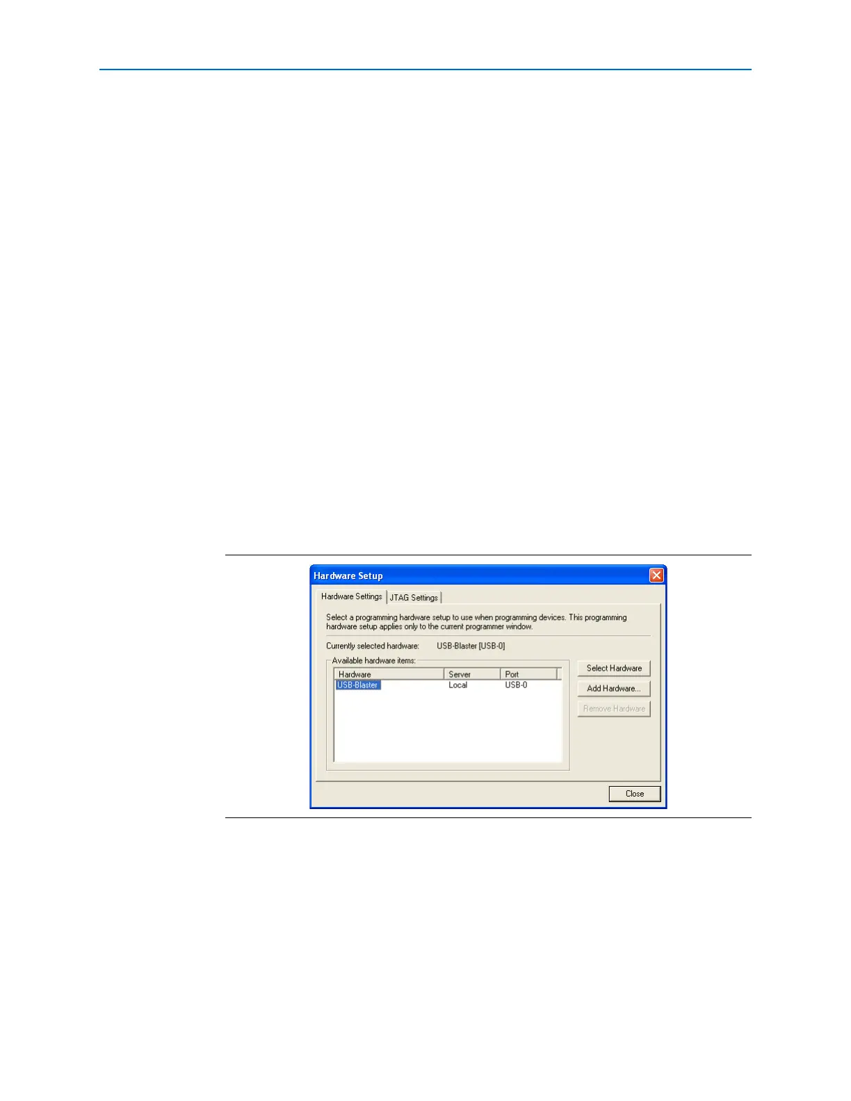 Quartus II software as described in the “Setting Up the USB-Blaster Hardware in