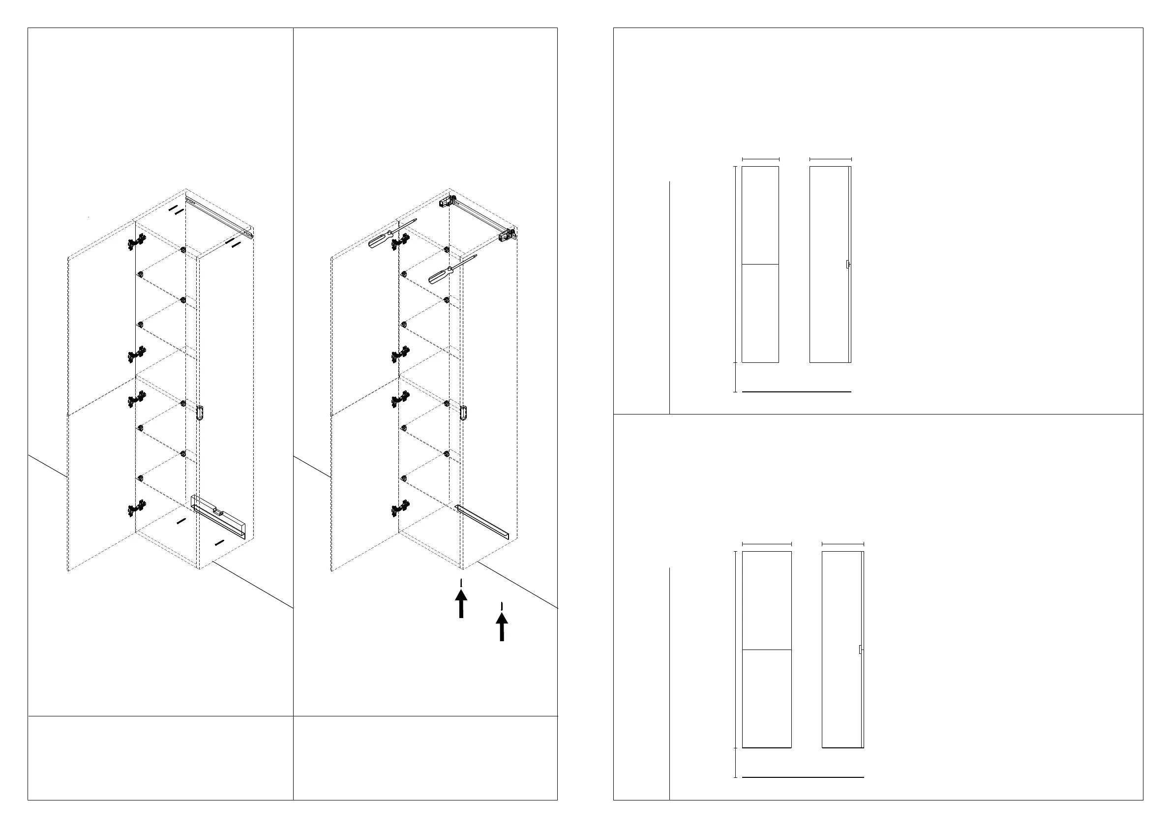 Level the cabinet and fix it to the wall and to the lower bracket. Adjust the upper plugs.