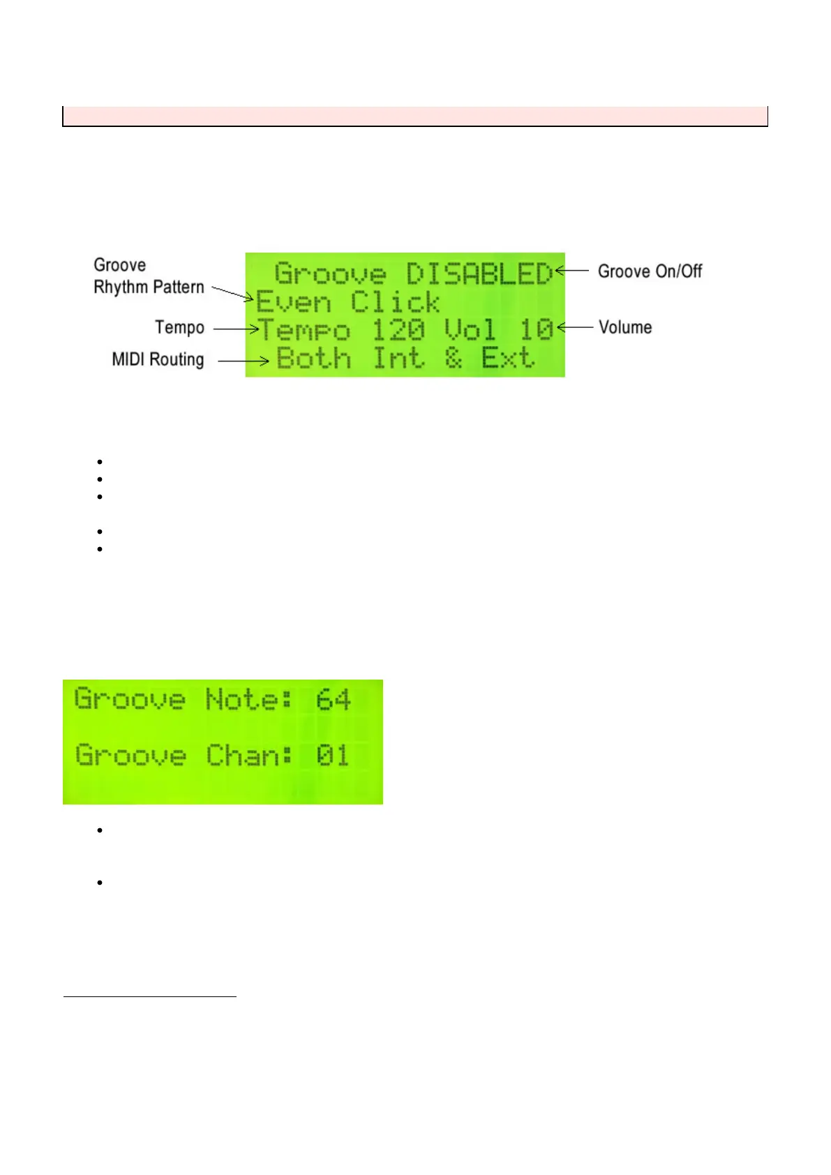 Configuring the Groove requires two editing screens. The first is found using the Global Auxiliary shortcuts 58-61.