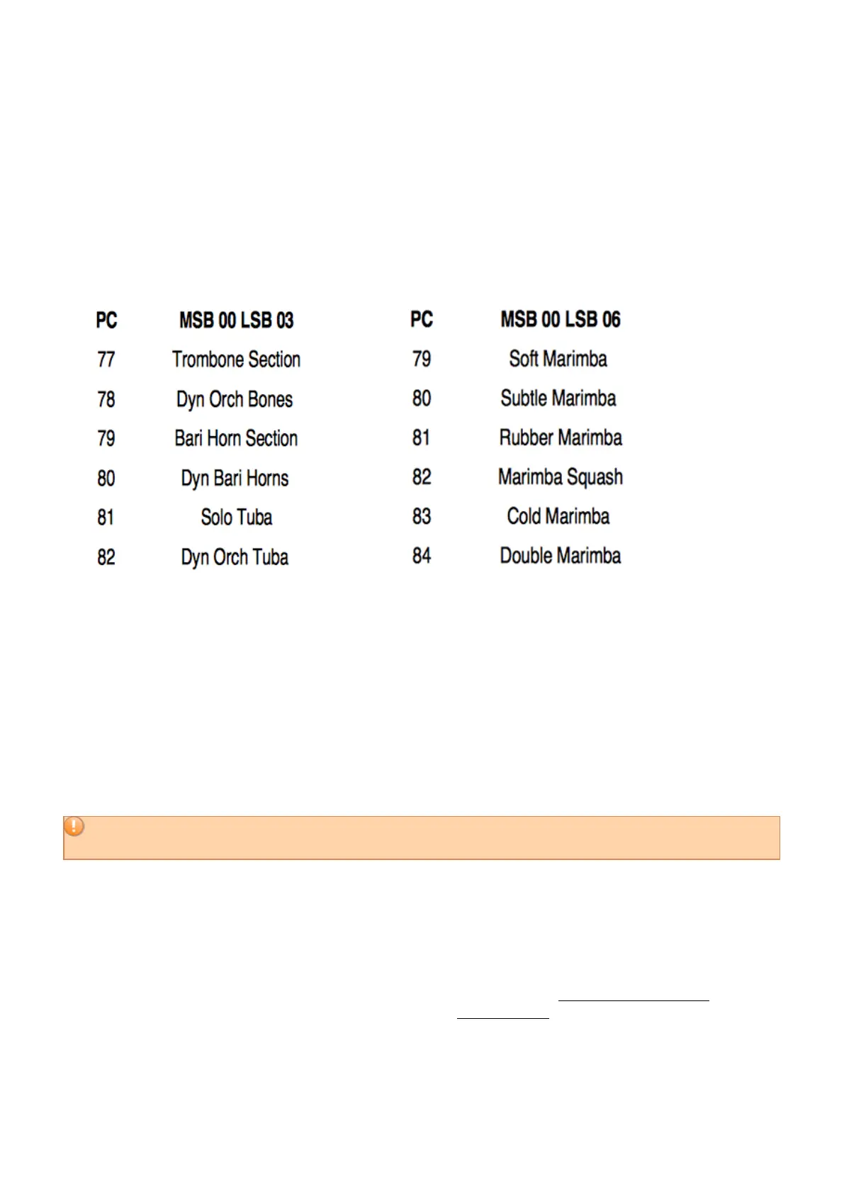 To call up a “Rubber Marimba” Patch, the controller must send MSB:00, LSB:06, and PC:81 to the synth.