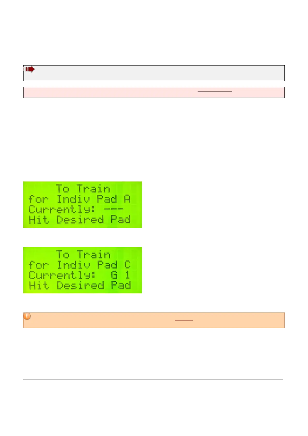 It is also possible to train up to sixteen individual pads. These pad training values are stored in “INDIV Pad Train