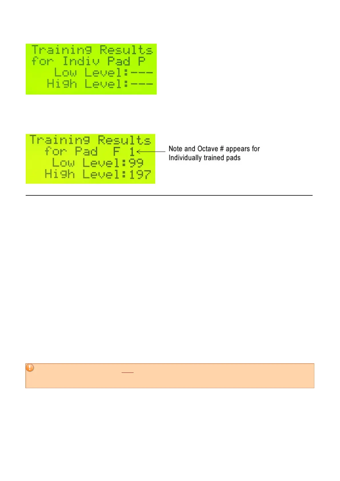 If you have individually trained pads, the actual Note name and Octave will appear here instead a slot letter (A-