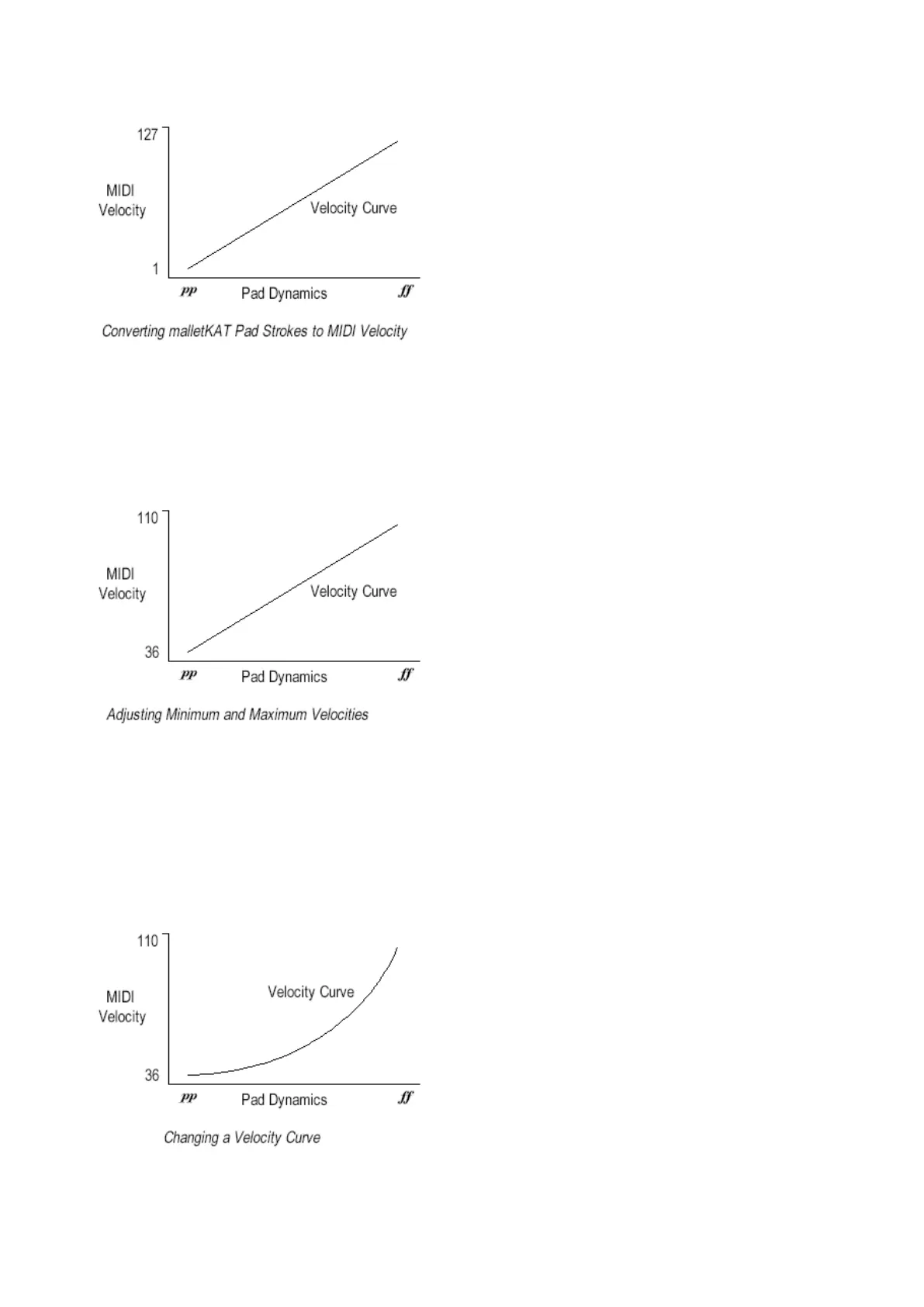 The default Velocity Curve (Curve #1) is completely linear, as shown above. Velocity Curve #2 keeps MIDI
