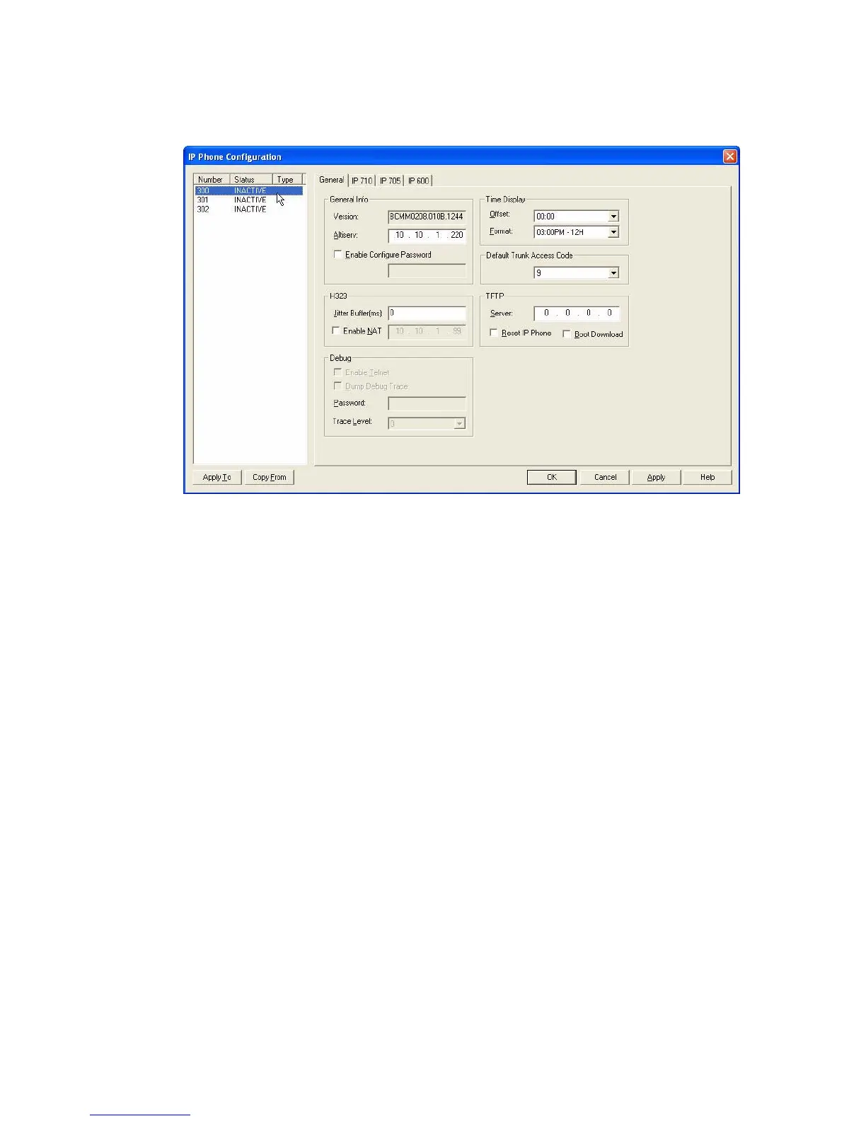 This opens the IP Phone Configuration window:
