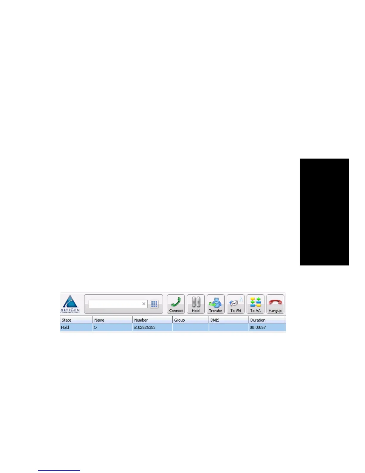 Click Hold in the call’s State cell to release the hold and reconnect the call.