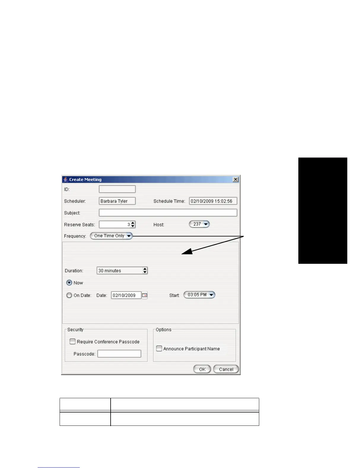 To create a meeting, click one of the Create buttons. The Create Meeting