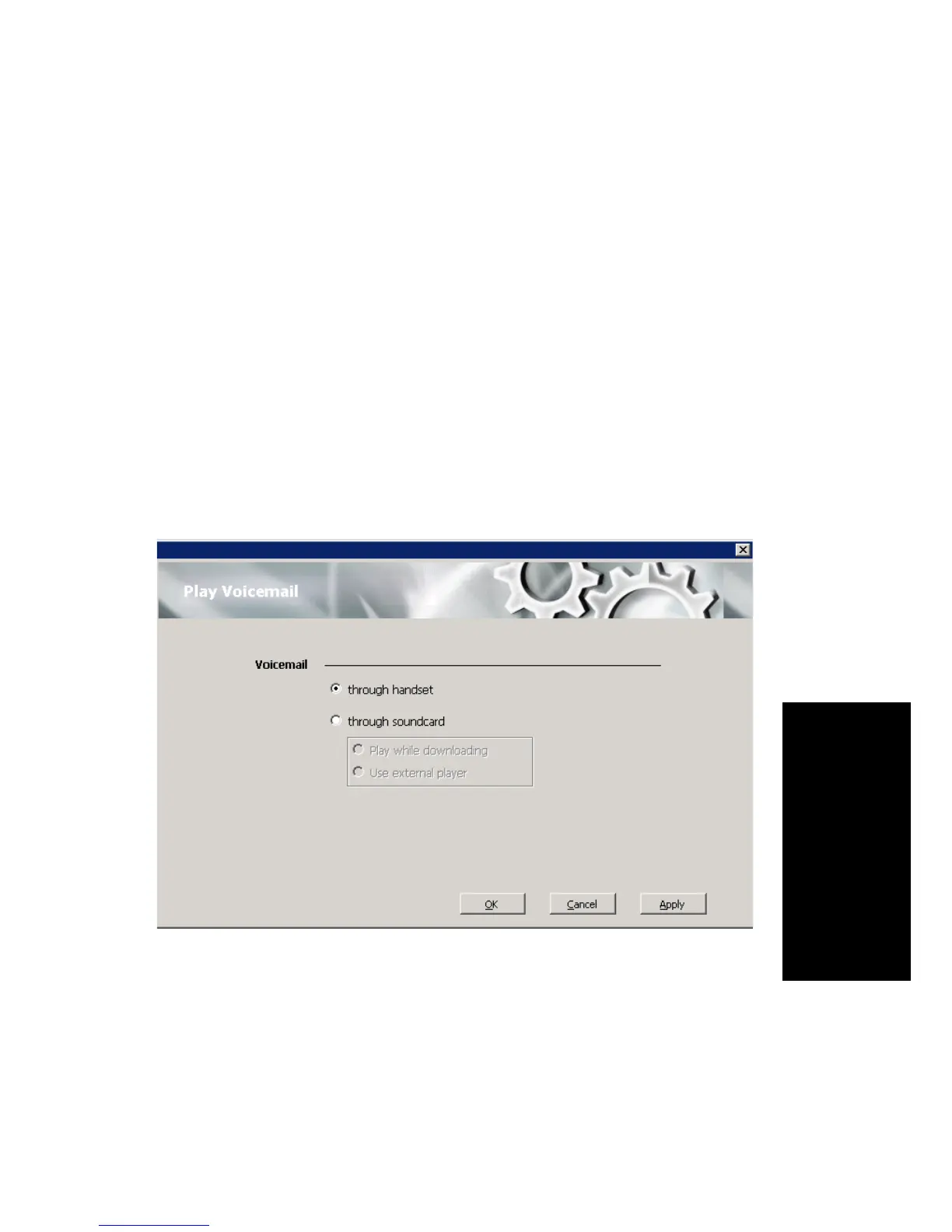 Choose Options > Play Voicemail in the Configuration screen to set voice