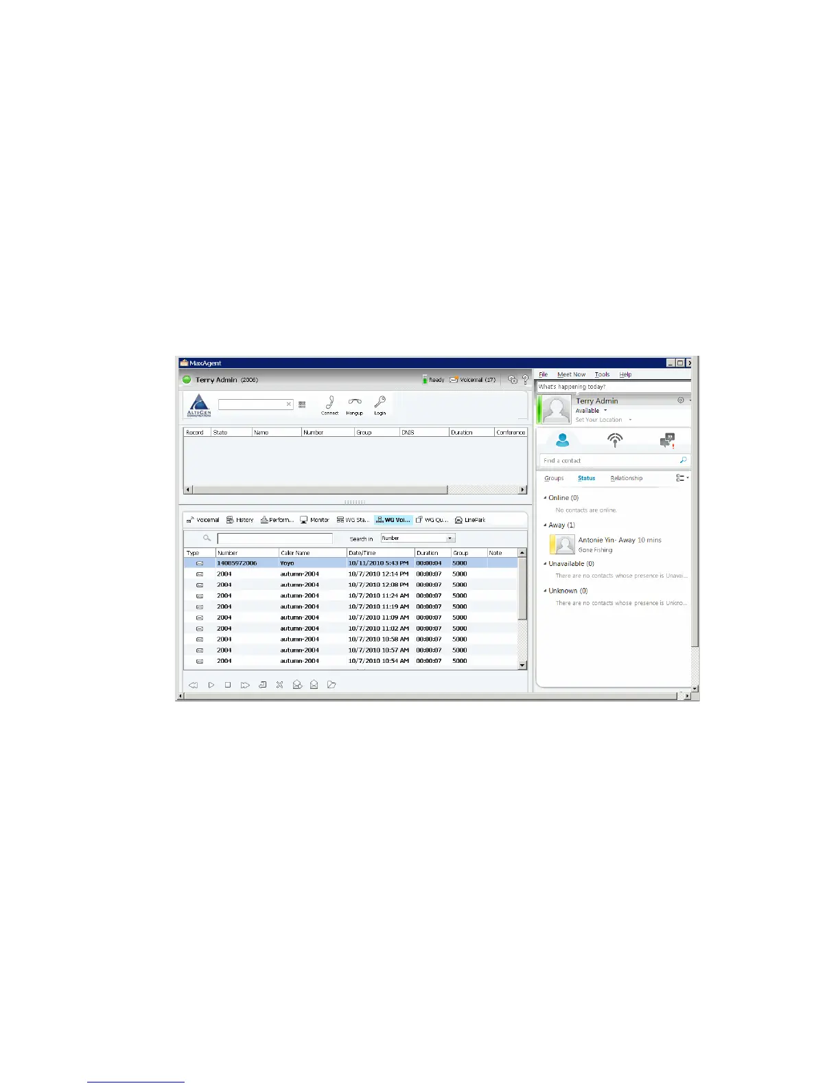 Once you log in, MaxAgent and Lync appear in the same window side by