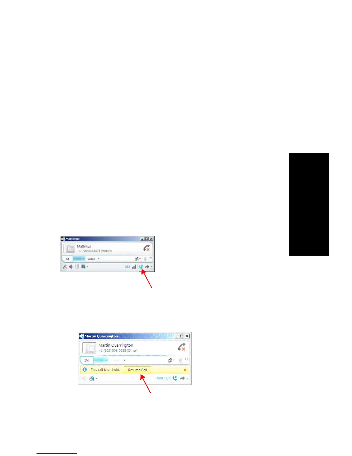 To place an active call on hold, click the Hold icon in the pop-up. The state