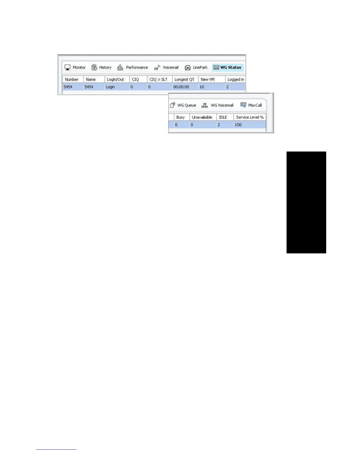 Click the Performance tab to view statistics on workgroup calls and direct